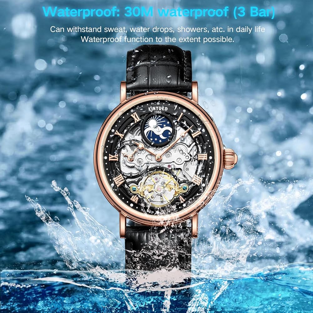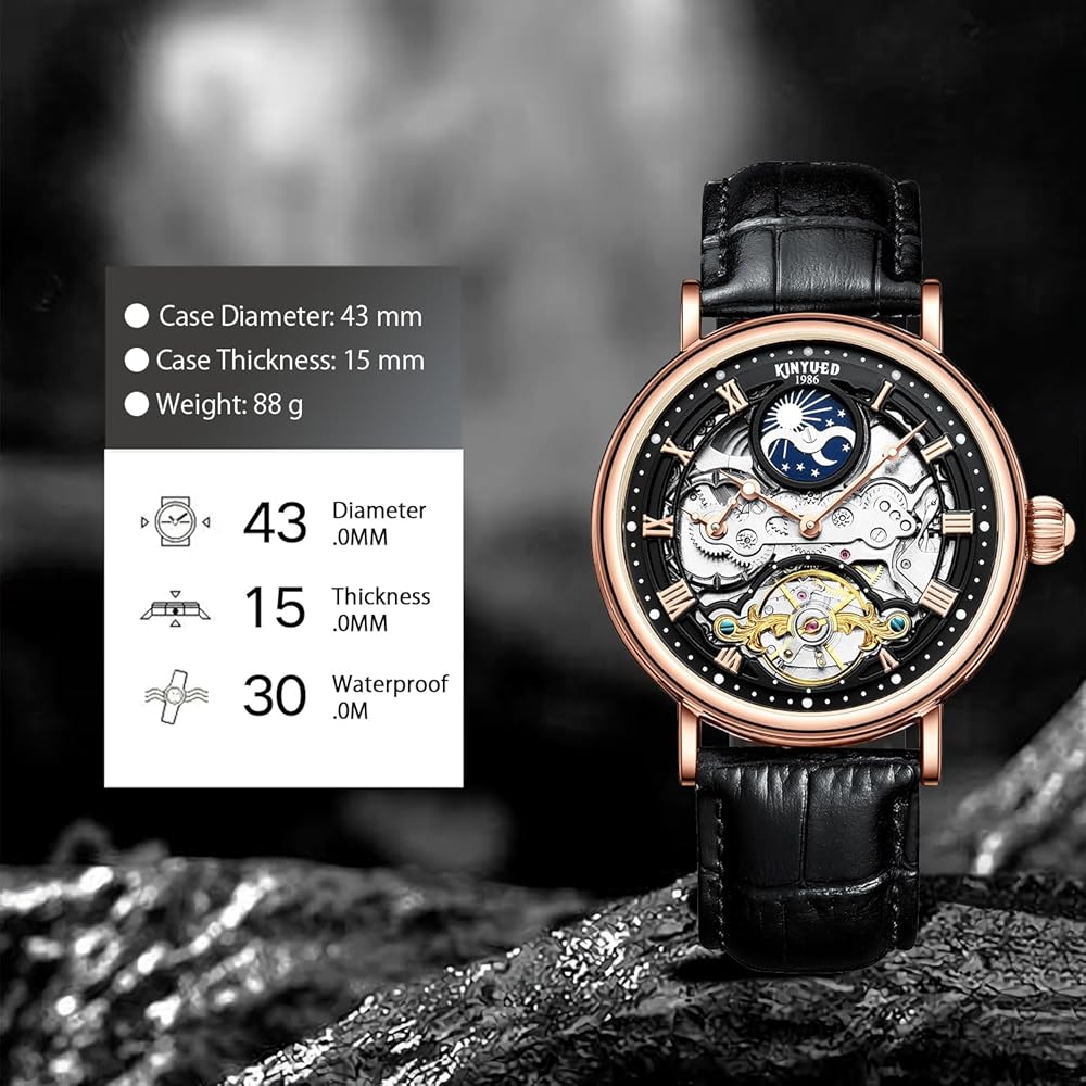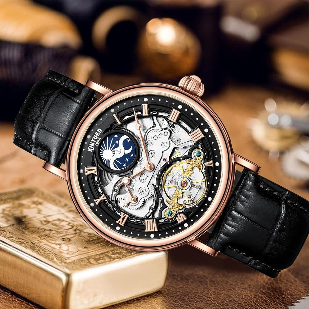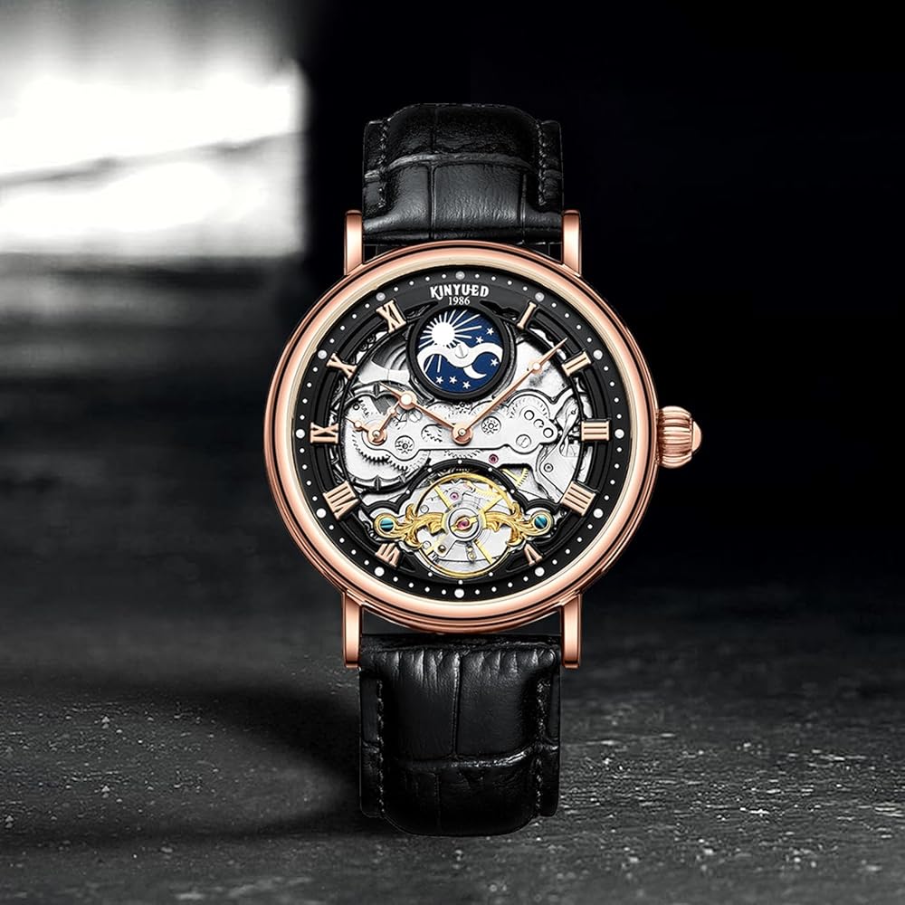 【SMALL BUDY, BUT VERSATILE】Quality brand original automatic tourbillon style relojes de hombre(watch); without a battery; calendar,waterproof, moon phase function.