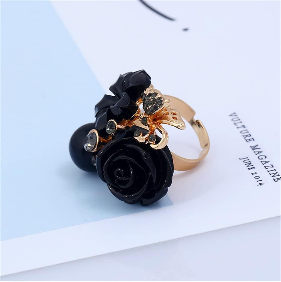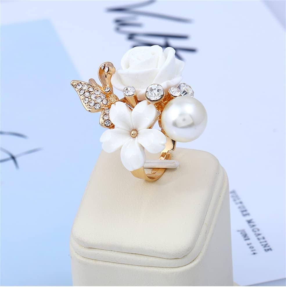 • Size & Details --- Adjustable, CZ Rose Flower Width 37mm. Engagement Round Rhinestone Crystal Acrylic Daisy Plumeria Open Wrap Finger Ring.