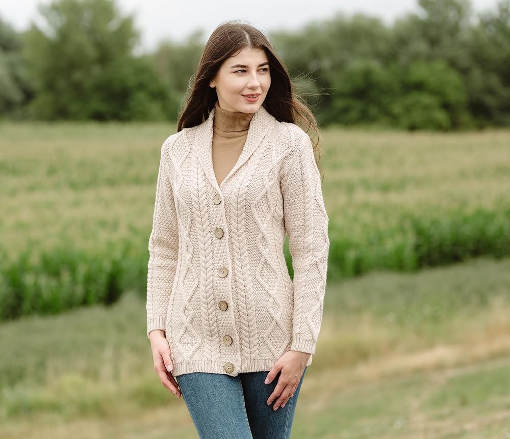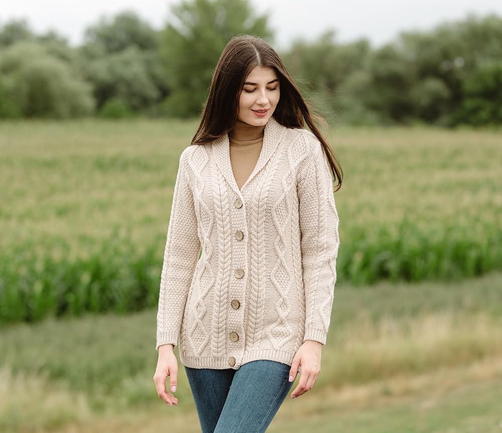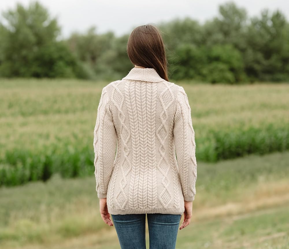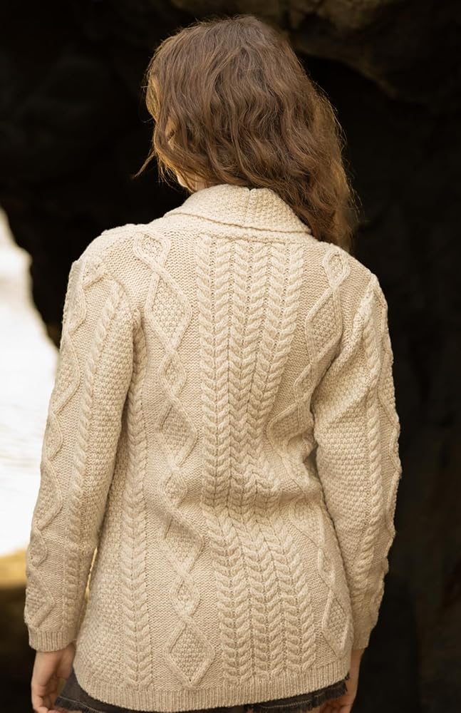 Tailored in Ireland by Saol knitwear company, this beautiful piece of clothing celebrates Irish culture and history by incorporating traditional Aran designs and patterns into modern styles for 21st-century women. This unique piece of Irish tradition and quality would make a thoughtful gift for someone loved and will be treasured for years to come.