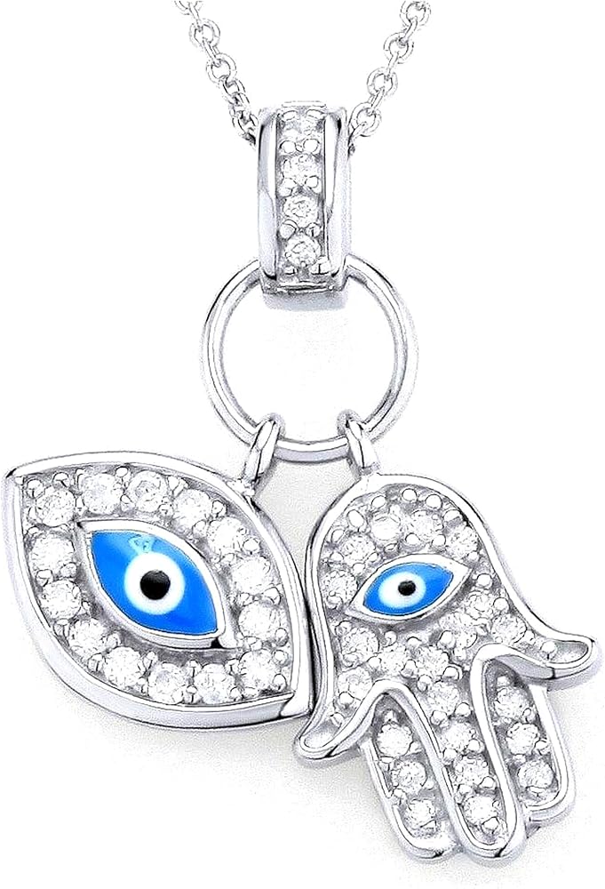 My Daily Styles 925 Sterling Silver Evil Eye White Blue CZ Pendant Necklace