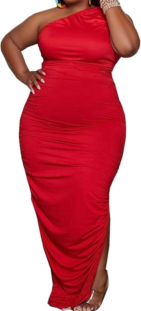 Features: plus size, one offt the shoulder, sleeveless, vintage, oversized dress for plus size women ladies, full length ruched side slit long maxi dress plus size,formal dress for party club night special occasions evening gowns