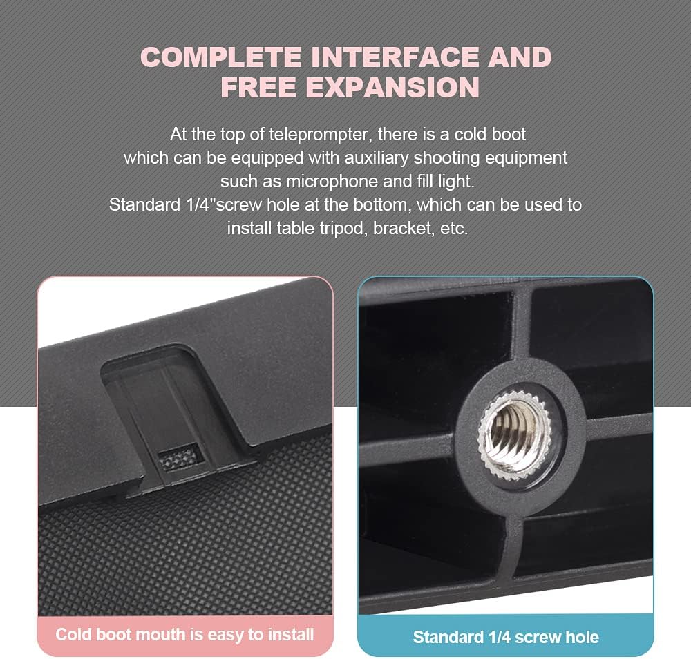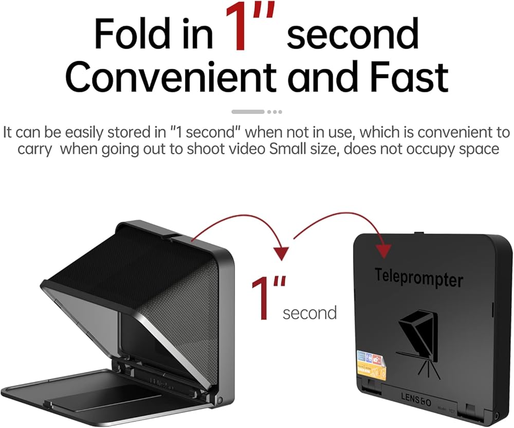 【Humanized Design】 The teleprompter can be folded in 1 second, the glass can be fixed at a 45 degree angle for you to clearly wathc the lines. Featuring multiple cold shoes, you can attach microphone,tripod and video light on this kit. The size of this teleprompter is 7.8”, easy to fold and portable to carrying. LENSGO teleprompter gives you more creative choices, by blending performance, connectivity, affordability with a sleek design and feel.