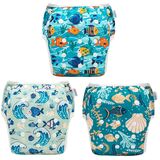 FASHION & STYLISH -A trim and attractive design that has a terrific fit on any baby. It can accommodate a range of different body shapes.Package contains 3 pcs swim diapers with 1 wet dry bag.