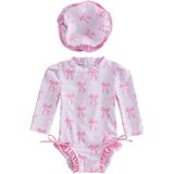 [Size]: Our baby girls' long sleeve rash guard one piece swimsuits come in five sizes, suitable for kids 6 months to 4 years.infant bathing suit 6-12 months baby girl swimsuit 12-18 months one piece bikini toddler girls long sleeve swimsuit 18-24 months baby girls' swimwear 2t 3t 4t. One-piece swimsuits are flattering for all body types and have a sleek fit without being restrictive.
