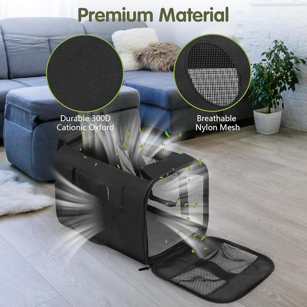 MULTIFUNTIONAL: The pet carrier can also be used a soft-sided crate for regular outings and vet visits with cats and small dogs.There is a small pocket on the outside of the bag to store food for your pets.