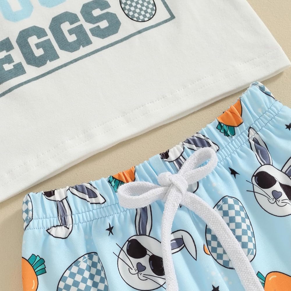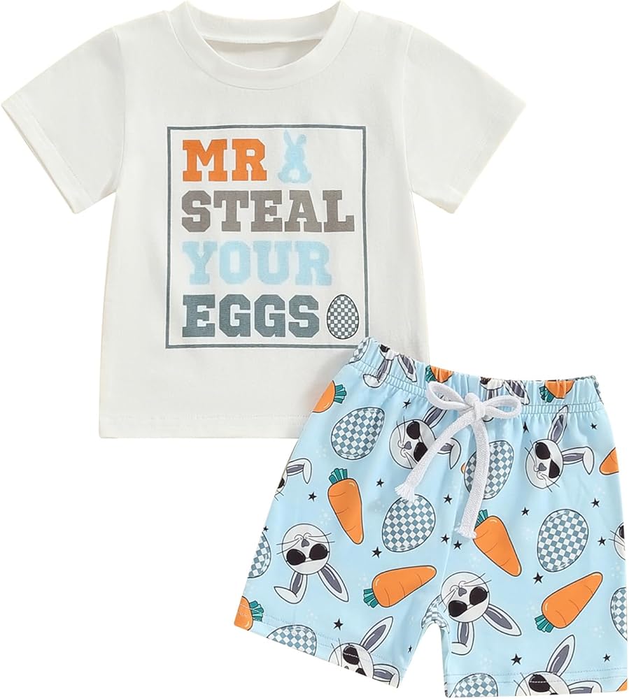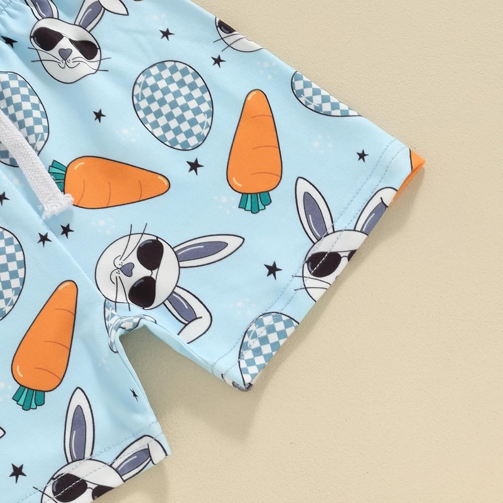 Cute design:Cute bunny and letters print shirt top,baby boy summer outfit, baby boy t-shirt with letter print, round neck, short sleeve design. Baby boy shorts with bunny egg carrot print in line with Easter theme and elastic waist design to ensure comfort and fit.