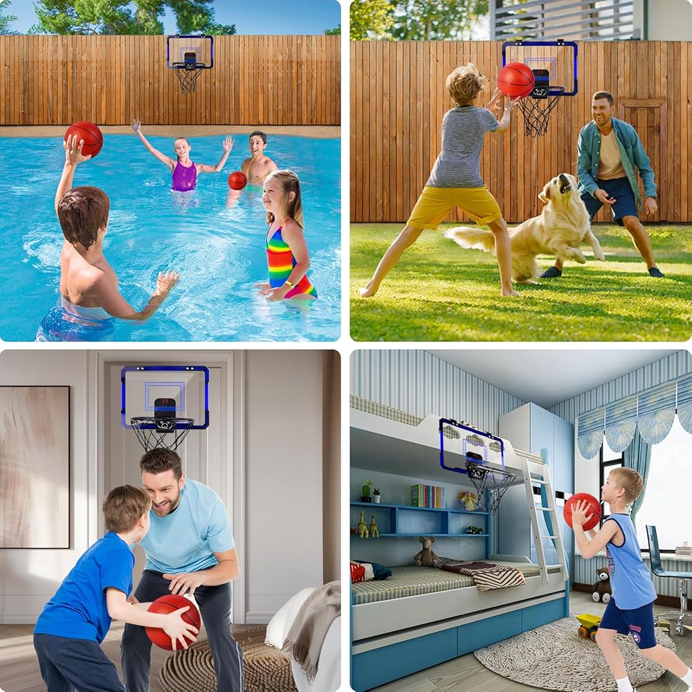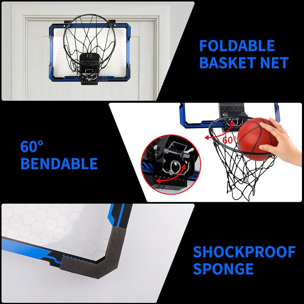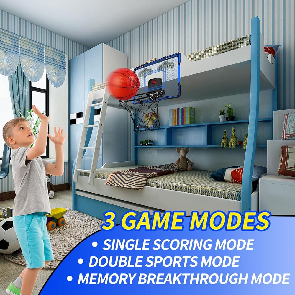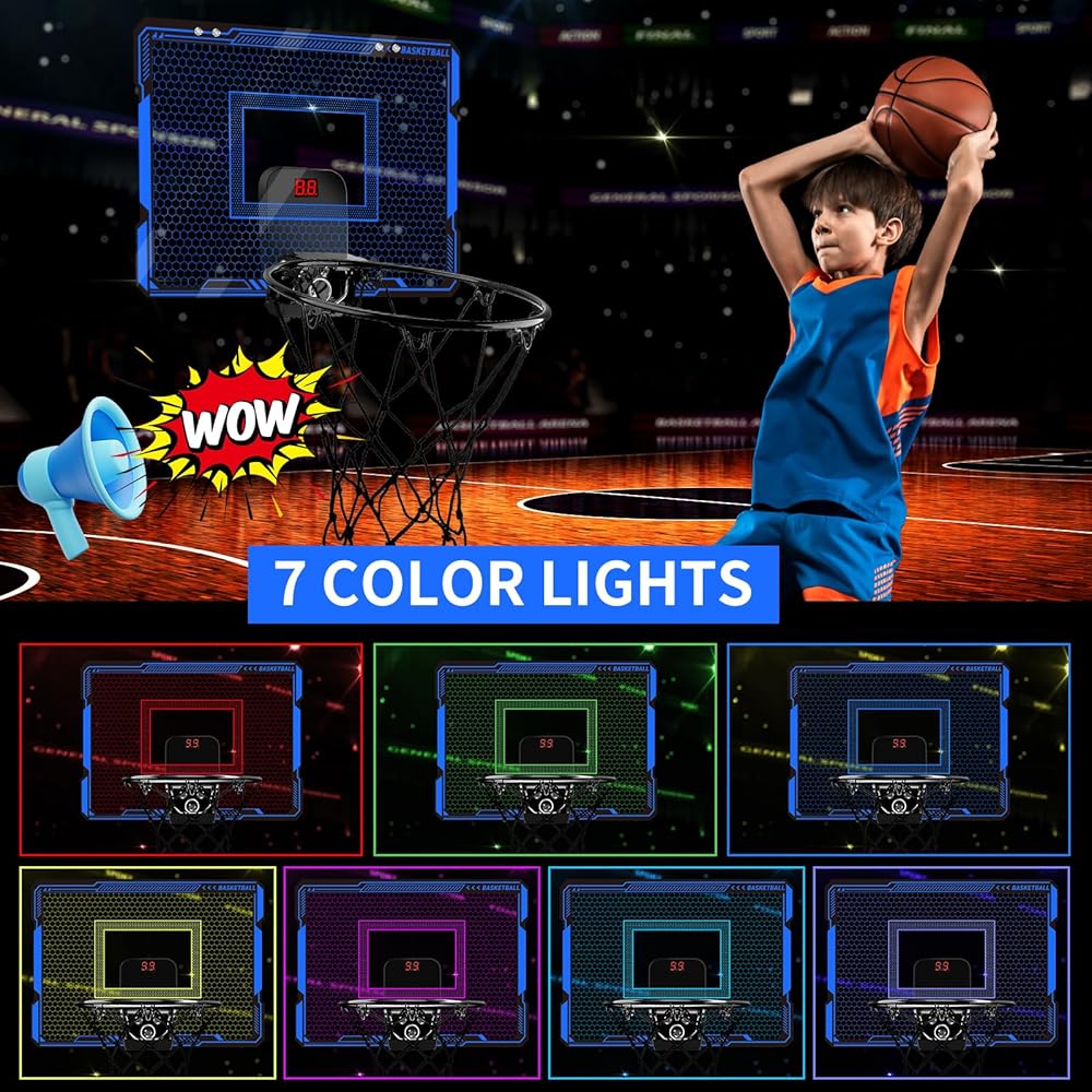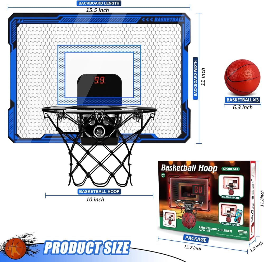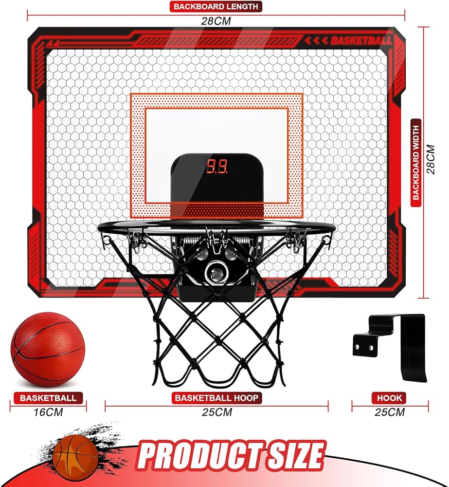 Digital LED Scoring and Sound: Mini basketball hoop with electronic scoreboards and LED lights that automatically calculates and accurately displays real-time scores. Every time a score is scored, the basketball hoop is accompanied by celebratory sounds and flashing light effects. It can create an exciting competitive atmosphere, dunk like a professional basketball player, and provide a real gaming experience.
