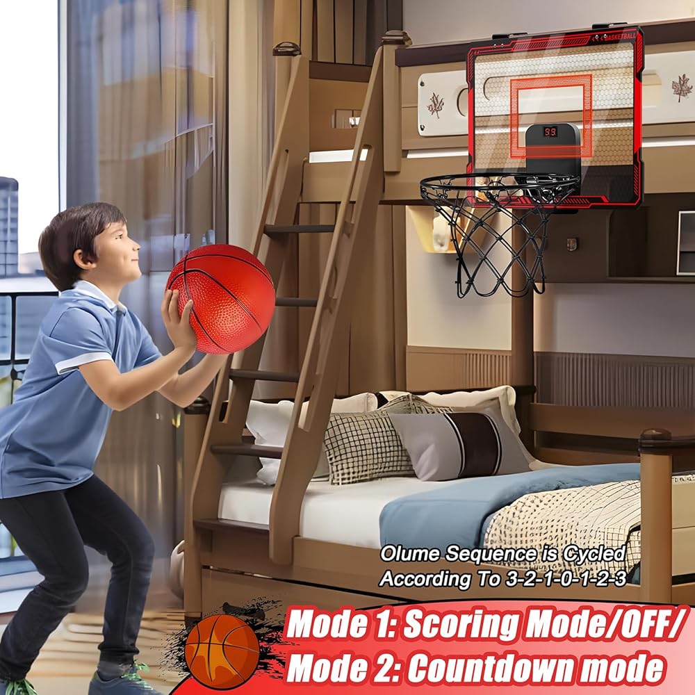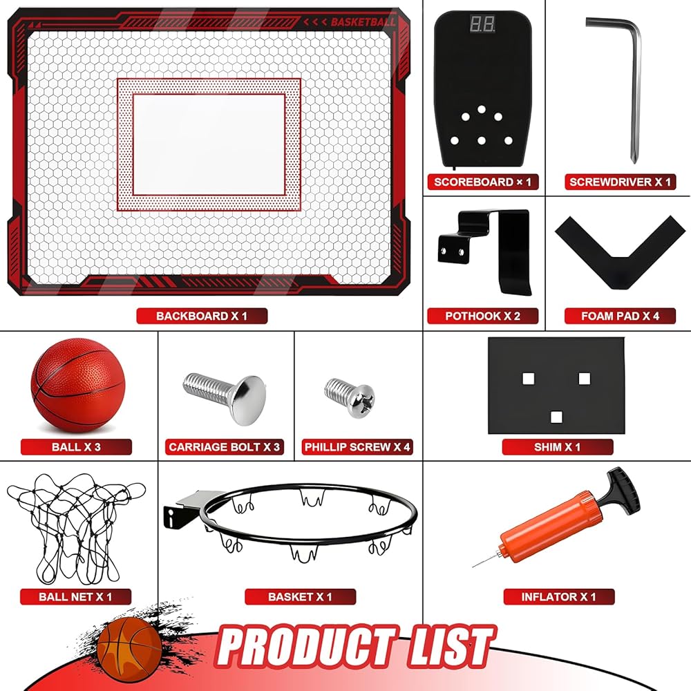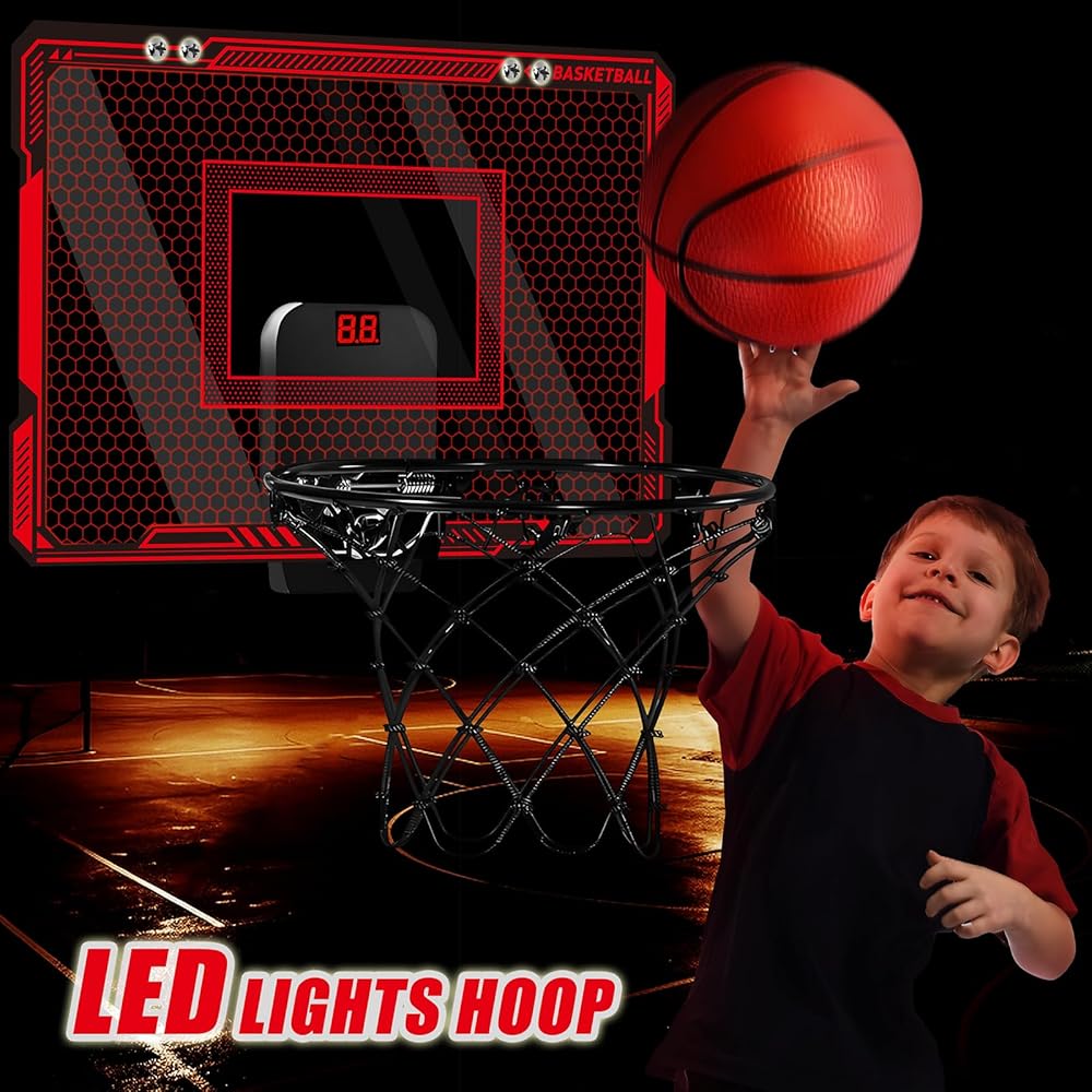 Indoor Basketball Hoop for Kids, Over The Door Mini Hoop with LED Light & Scoreboard - Easy Install & Safe for Doors, Birthday for 5 6 7 8 9 10+ Year Old Boys (Red)
