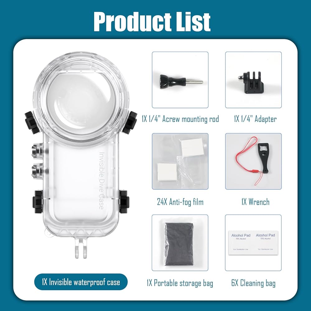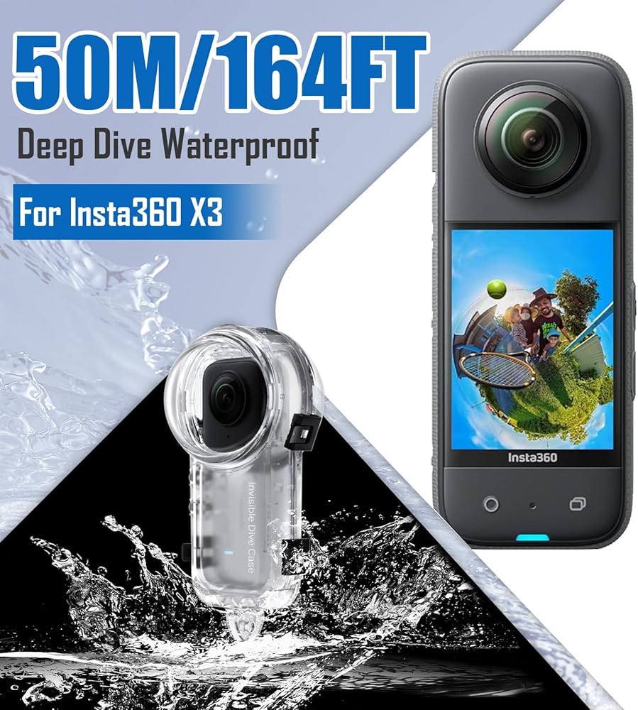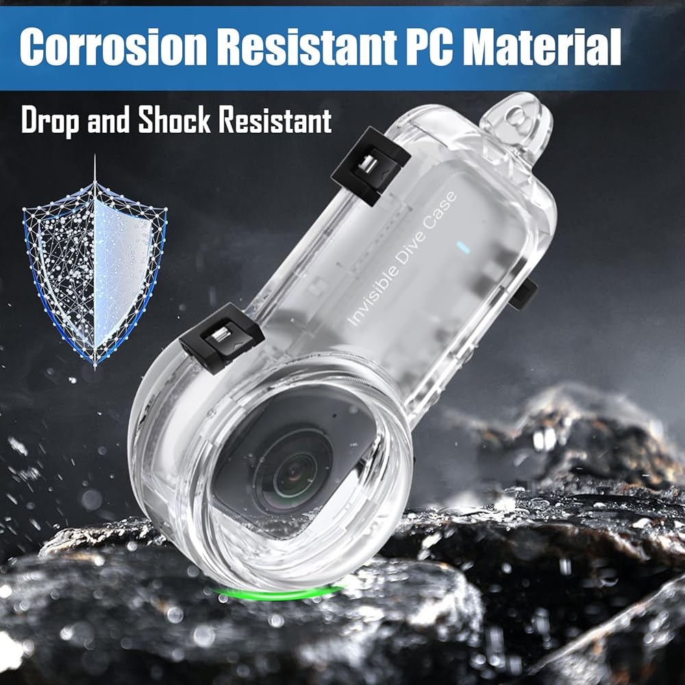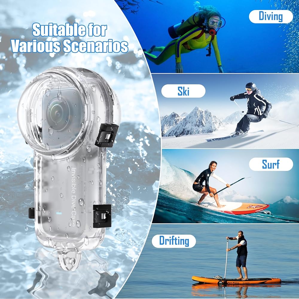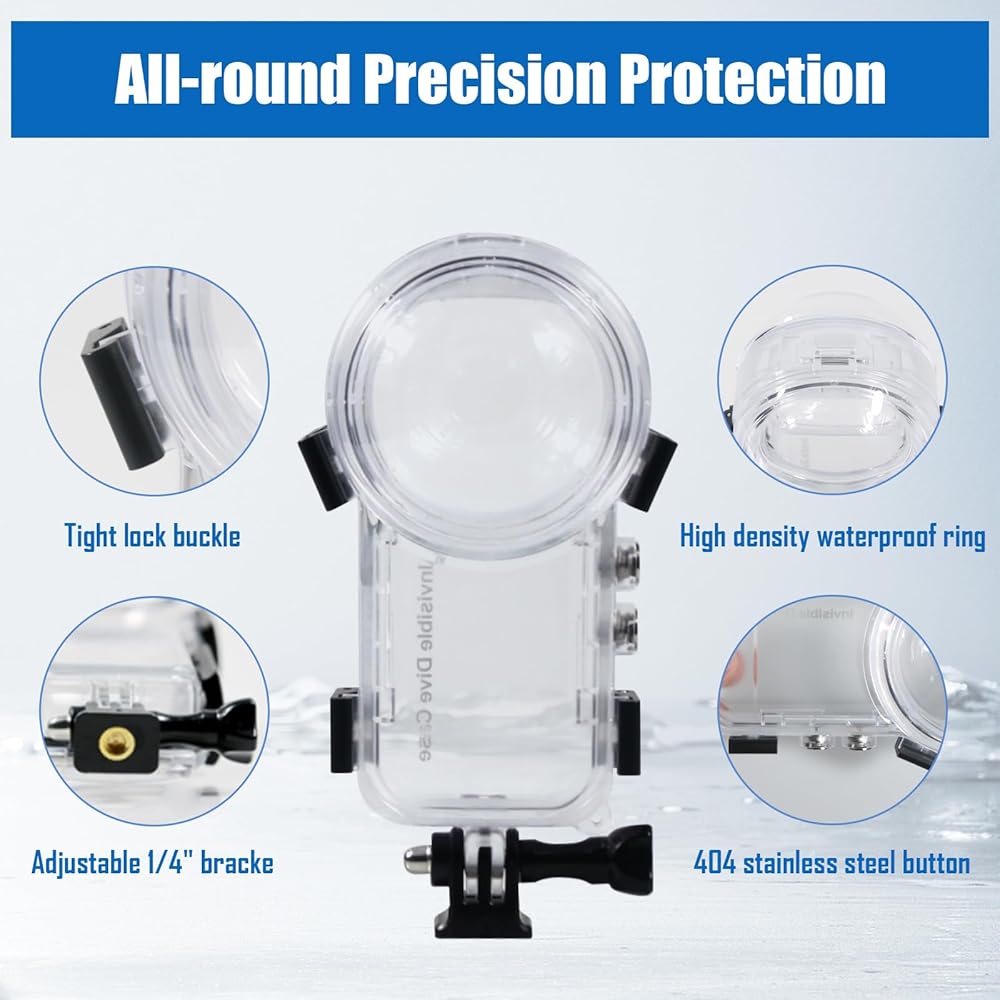 📷【Professional Design】Invisible dive case specially designed for Insta360 X3, completely invisible, 360-degree shooting without obstruction. Great for diving, surfing, snorkeling and other water sports.