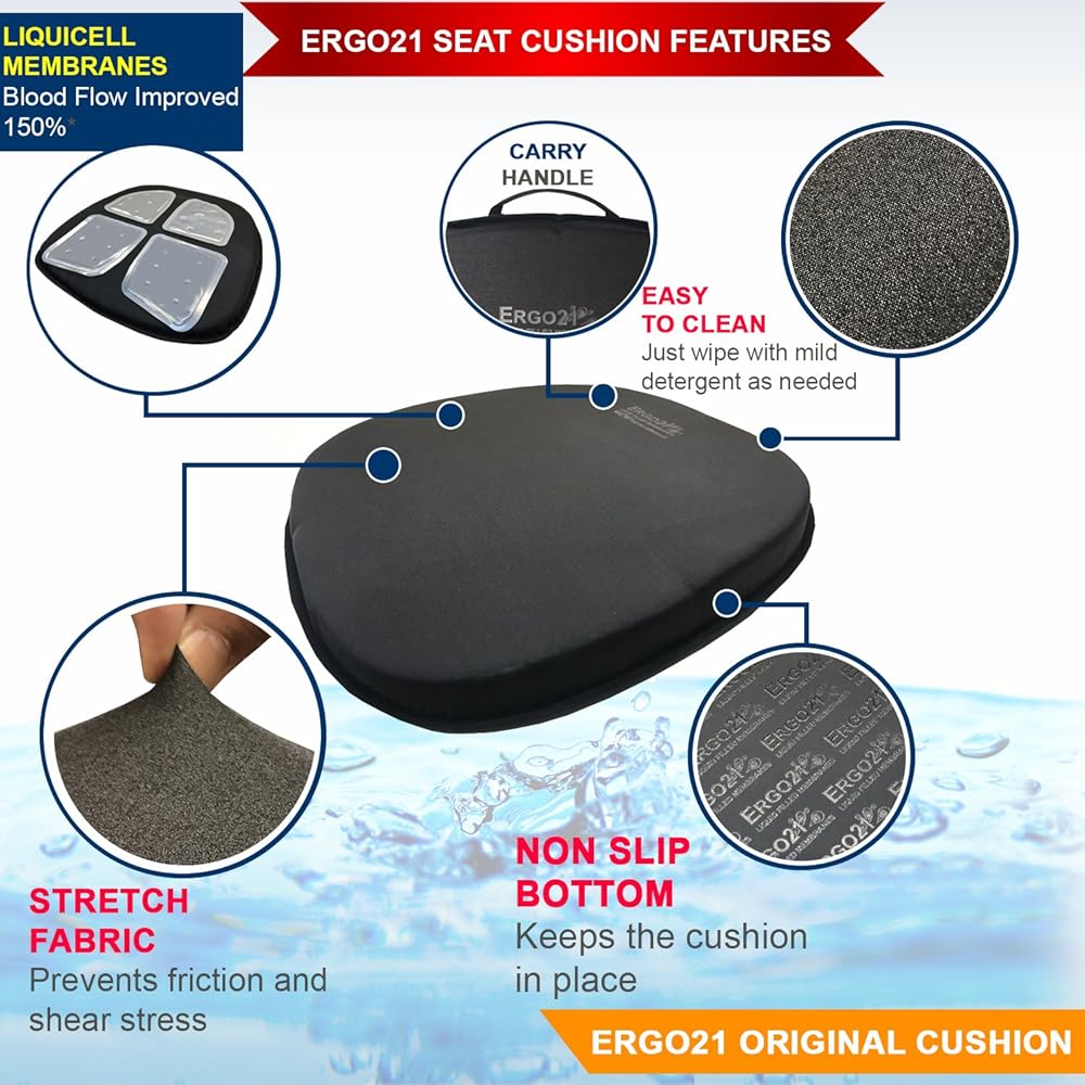 Improved Comfort – Ergo21 LiquiCell original car seat cushions are designed to distribute pressure evenly across the seat, which can reduce the pressure and pain on sensitive areas like the tailbone, hips, and thighs. This can help to prevent discomfort and sciatica pain during long drives.
