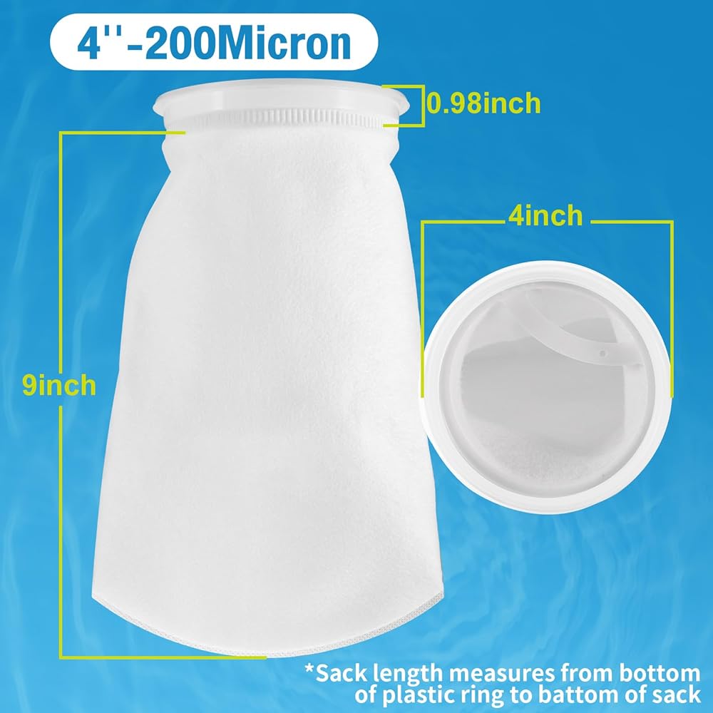 Improve Water Quality-Our filter socks have interlocking micro-felt fibers, which can effectively capture uneaten food, excrement, decay, debris and other floating particles. Cleaning or replacing the filter bag regularly can better maintain the water quality and avoid eutrophication (which will increase the growth of algae).