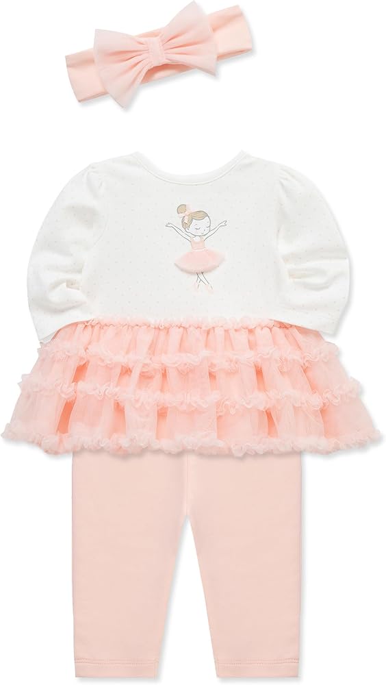 PLAYFUL AND STYLISH: Adorable combination of a tutu-style shirt and coordinating leggings. Tutu shirt features a playful and stylish tulle skirt for a cute look. Soft and comfortable leggings provide ease of movement.