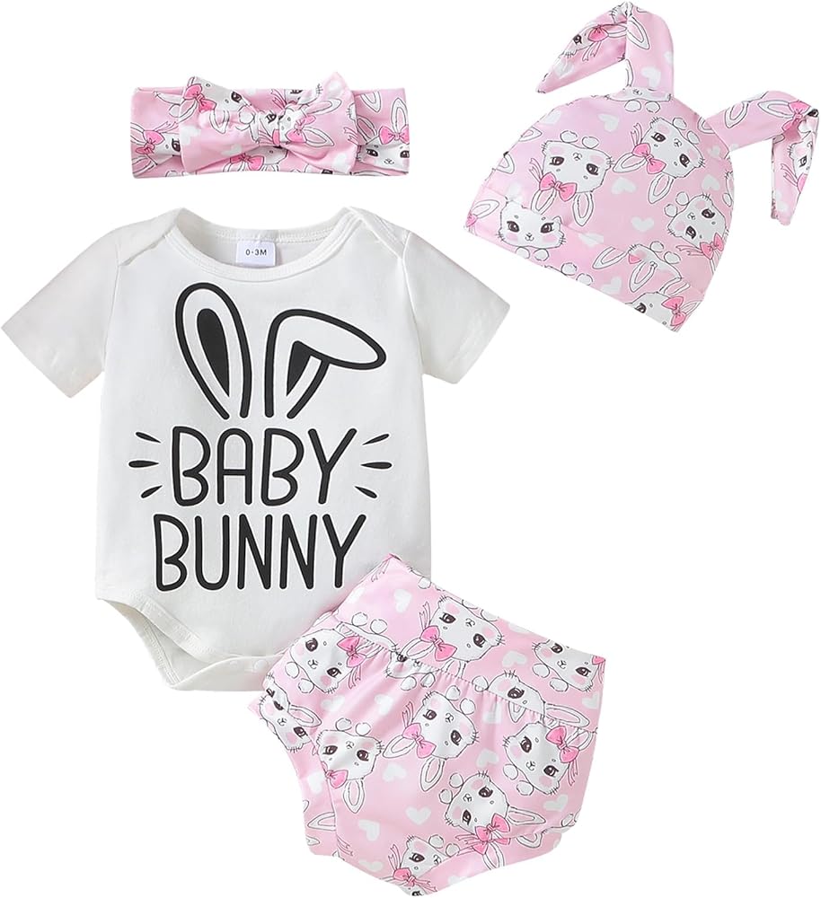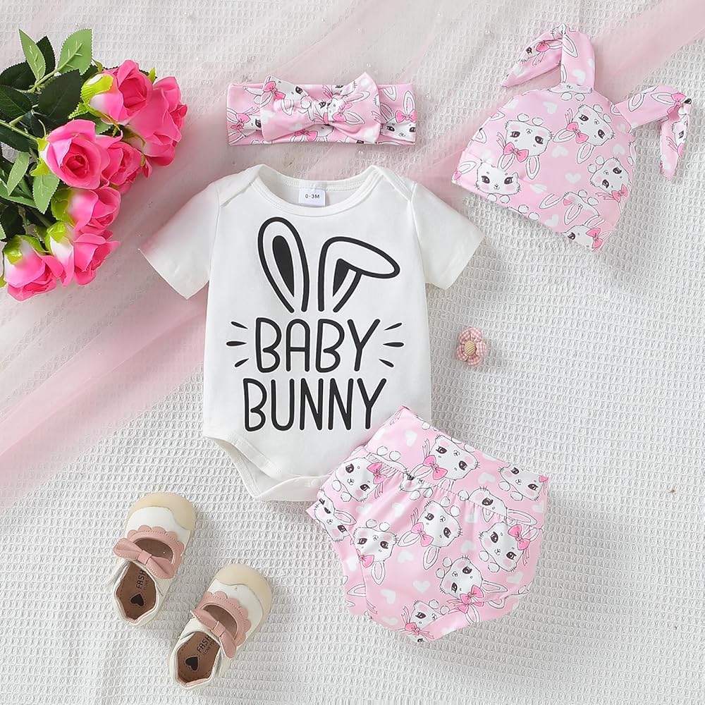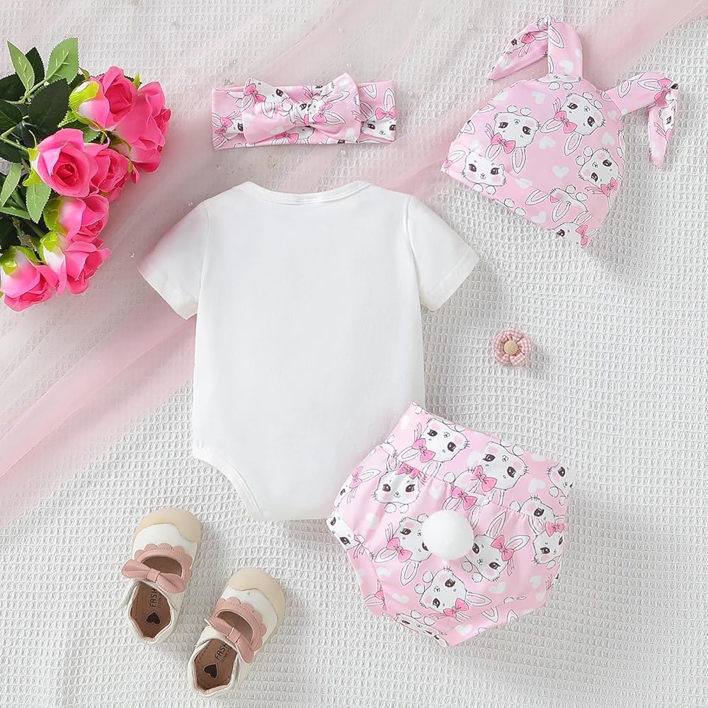 DESIGN:Adorable Baby bunny hat, fashion easter headband for babies, these headbands are adjustable and will grow with your baby. Baby bunny letter print romper onesie, Cute bunny tail shorts, prefect easter gift for baby girl. Toddler easter outfit, newborn girl easter outfit, babies first easter, my 1st easter baby girl outfit, baby girl easter hat, preemie easter outfit girl, toddler easter outfit girl, easter for baby girl, easter outfit baby, easter newborn outfit girl.