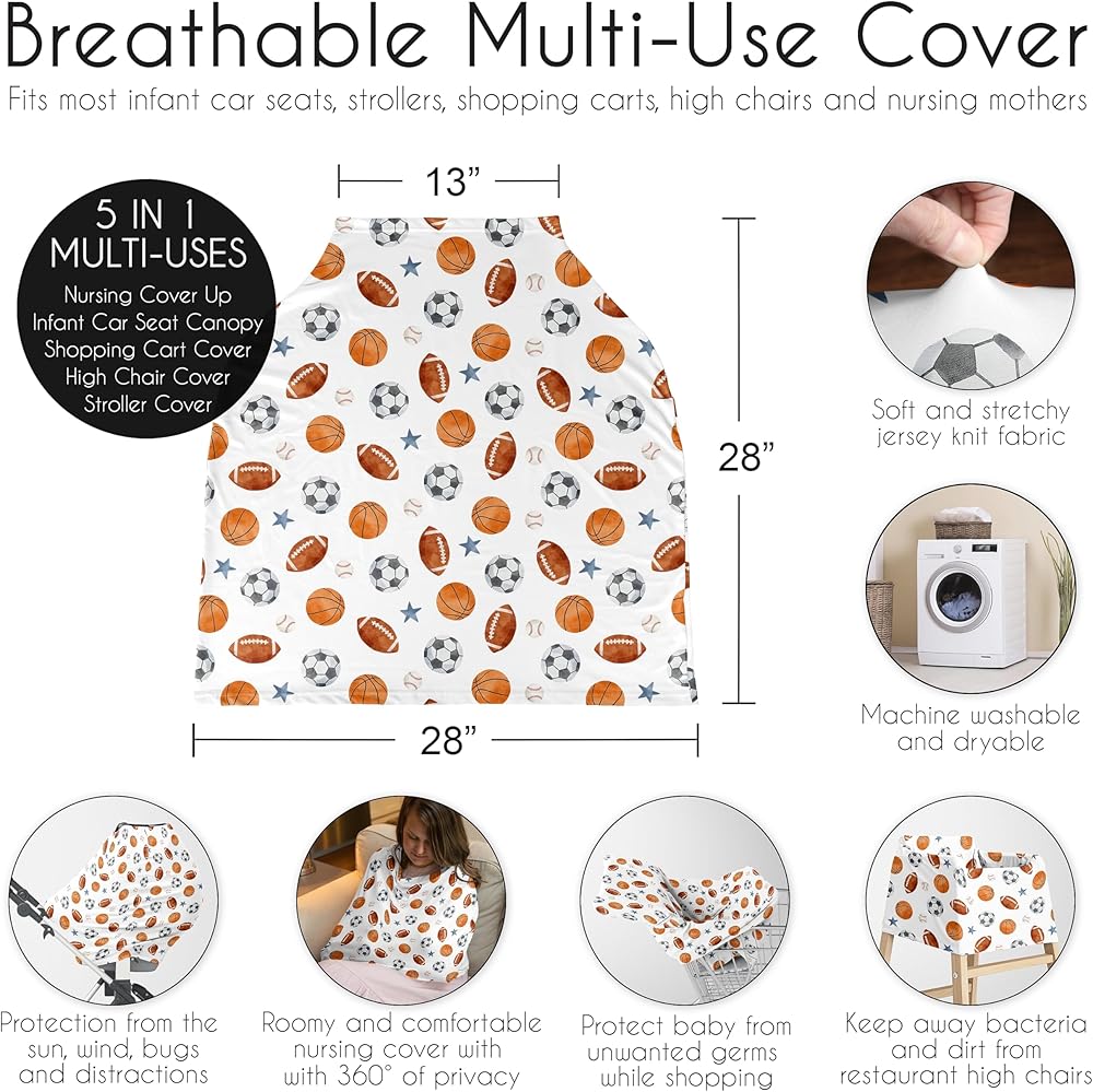 This soft and stretchy multi use baby car seat canopy and nursing cover will be your next newborn essential. The 5 in 1 cover makes the perfect baby car seat cover, baby nursing cover, breastfeeding cover, baby high chair cover, baby shopping cart cover, infant stroller cover, baby carrier cover, infinity scarf and much more for both you and your infant.
