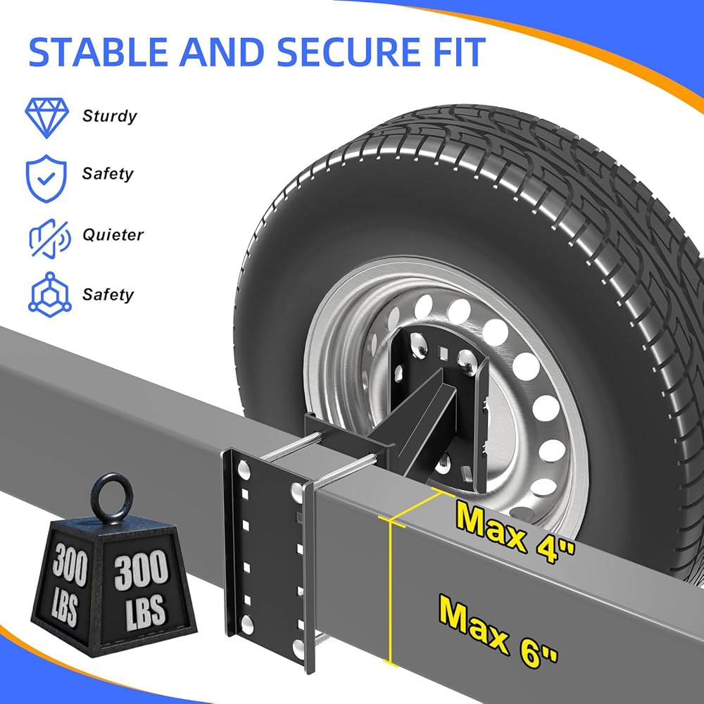 ✅ Wide Range Compatibility: This spare tire bracket mounts on trailer tongues up to 4" wide and 5" tall.