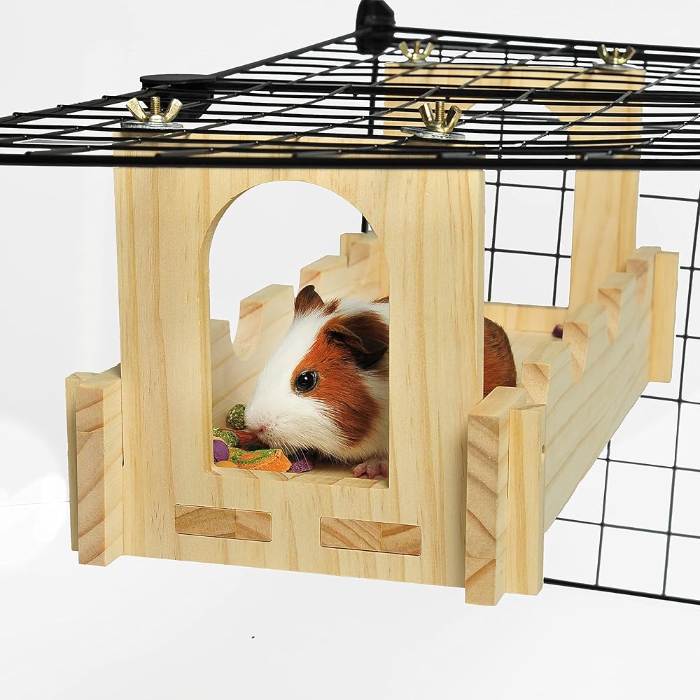 Multiple Combination: A variety of combinations make the range of use wide. The wooden playing platform increases the space inside the cage, make it more suitable for small pets, squirrel gerbil chinchilla hamster hedgehog even birds.
