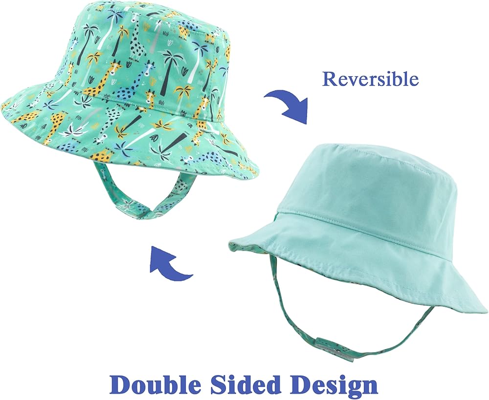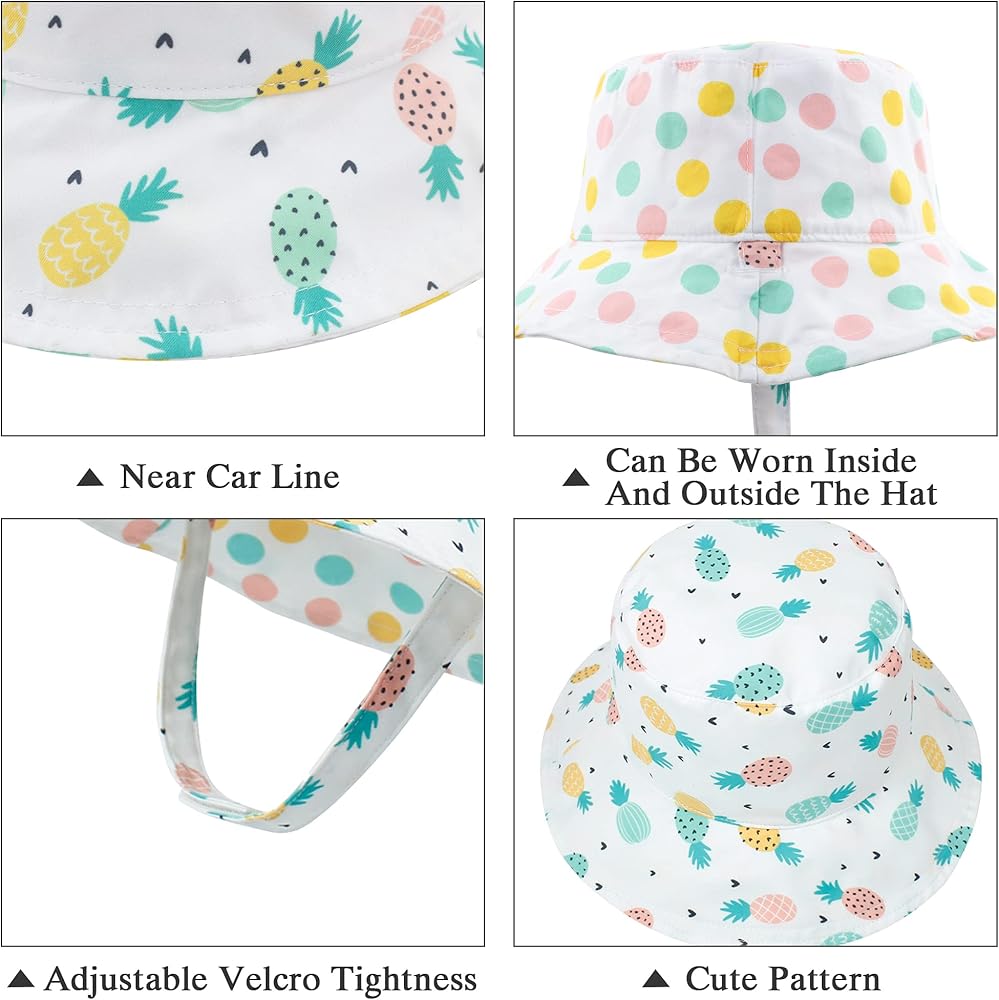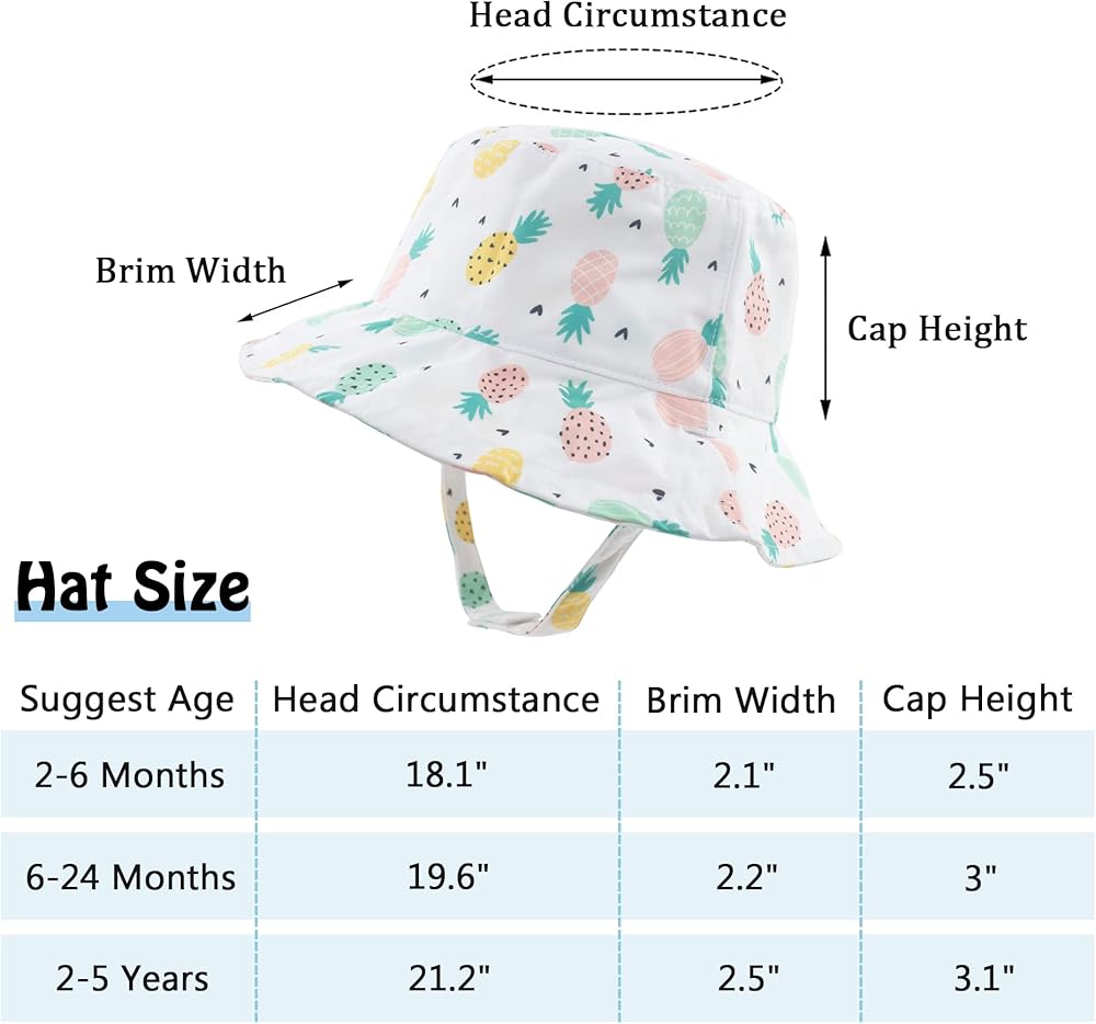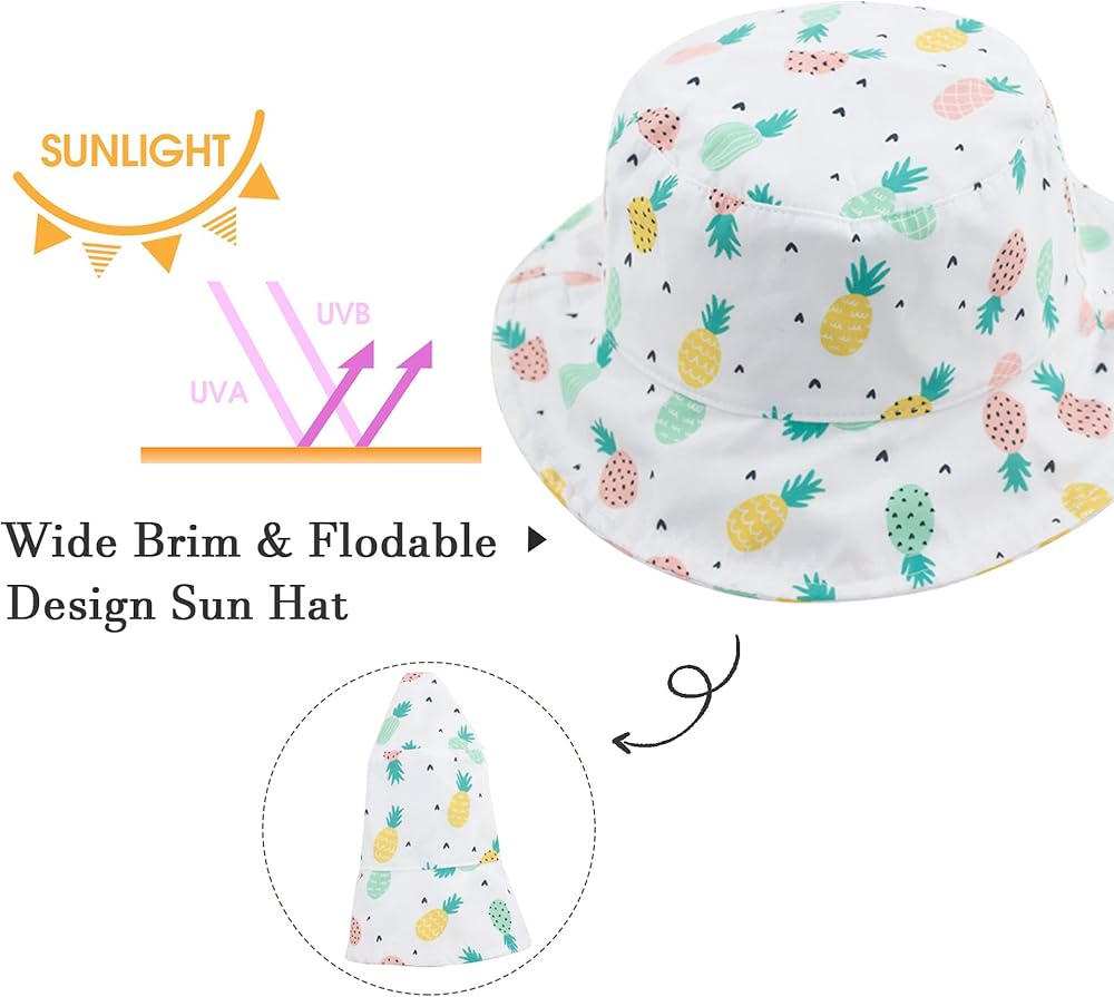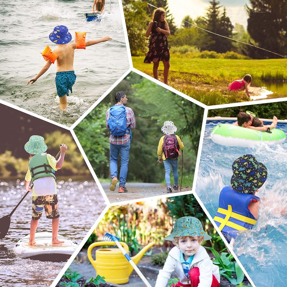 【Premium Natural Material & Foldable】 The toddler sun bucket hat is made of 100% polyester fabric. Soft, skin-friendly, cozy, durable, lightweight and perfectly fit the children's skin. Suitable for outdoor activities in the summer. Premium breathability can keep cool all days when the baby wearing. The premium summer outdoor sun hat is lightweight and easy to pack and carry. Just fold it up and put it in your luggage or handbag, which doesn't take up much space and convenient to carry.