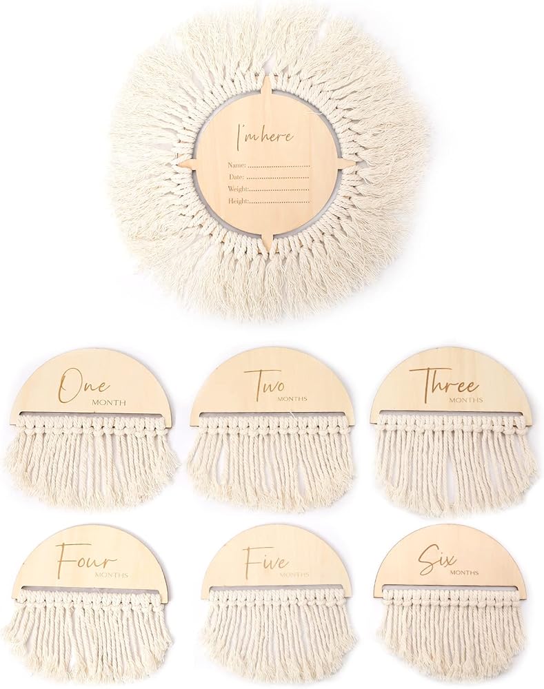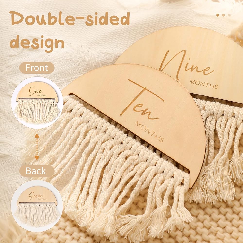 【Safe Material】: Our baby milestone wooden circles are made of 100% natural beech wood. Every side is polished and smooth, non-toxic paint and no burr. Made with a higher standard in mind highly durable and made to last. Your will cherish reusable wooden milestone circles as baby keepsake heirlooms for growing .