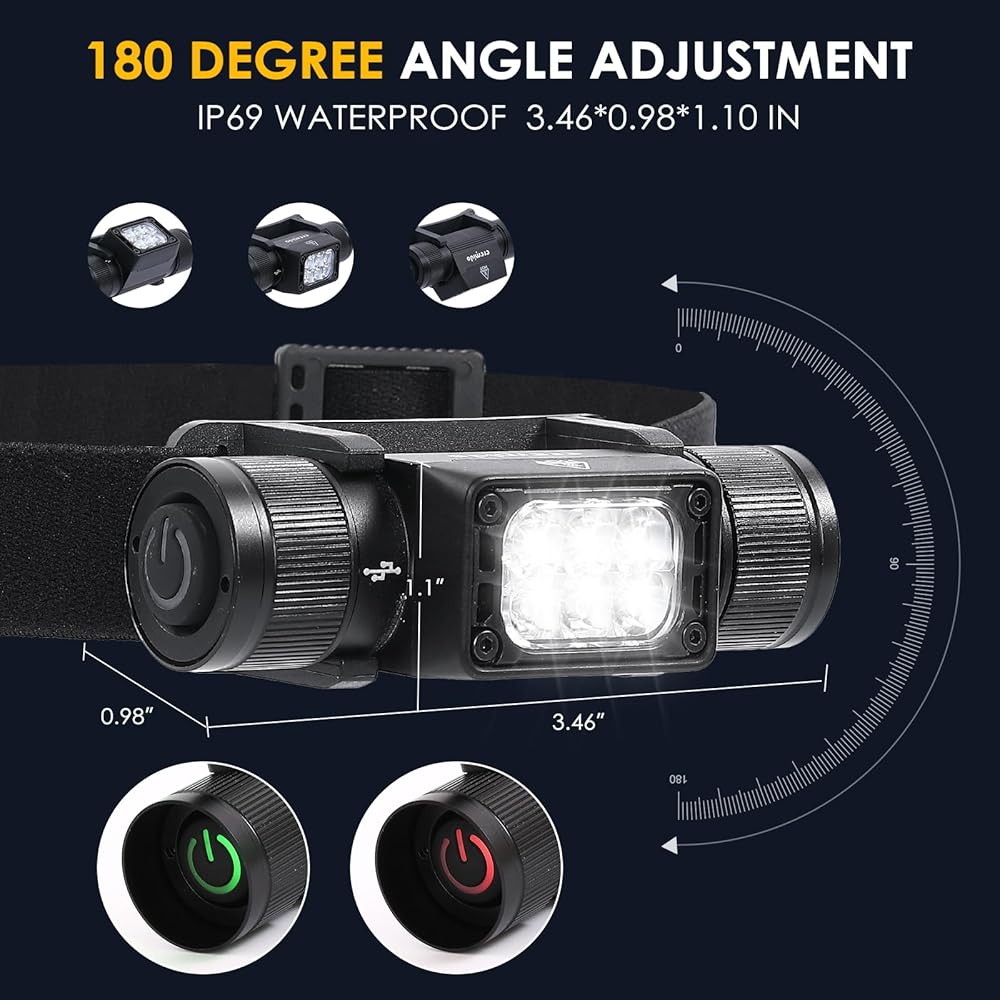 〖Convenient and fast to use〗 Although the headlights are compact, we have designed a relatively large button that makes it very convenient for you to turn them on and switch between different light sources. You only need to stay for 10 seconds before turning them on, and you will keep your previous choices
