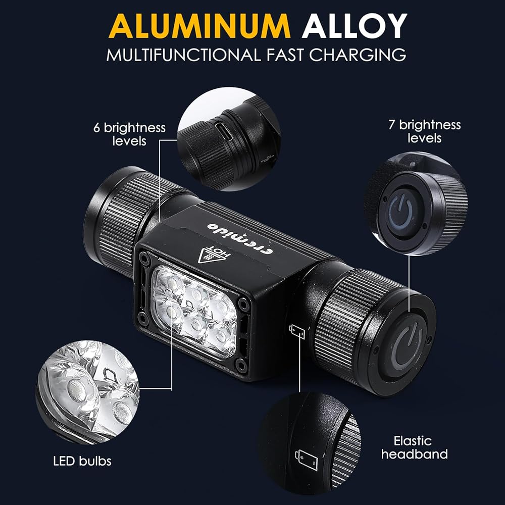 〖What is the difference in choosing us〗 Have you ever seen a headlight with six lamp beads? The EREMIDO headlights are available in three different lighting modes: white, green, and red. There are seven modes to switch between, providing batteries and sustainable charging