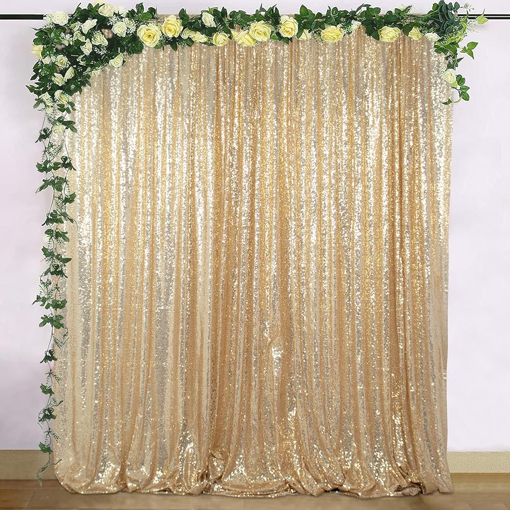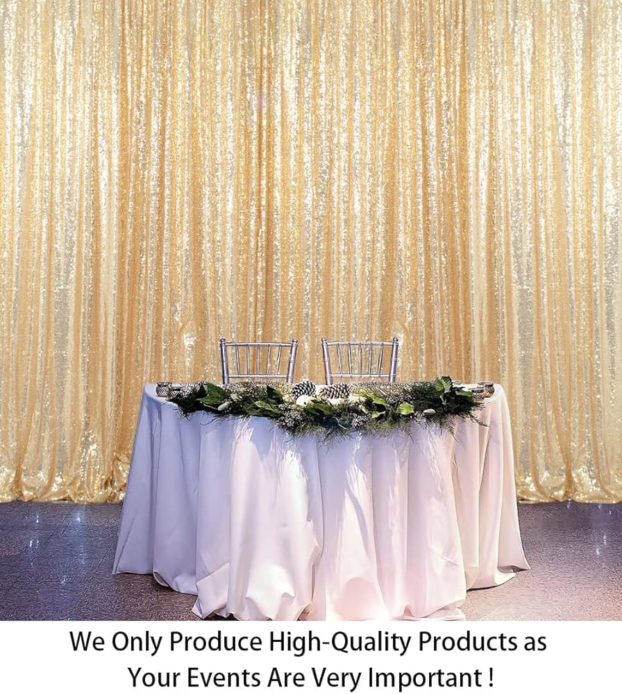 Sequin Wedding Backdrop : Made of high density sequin fabric, the glitter backdrop bring sparkle beauty and elegance to your event. This payette sequin backdrop is not see through.