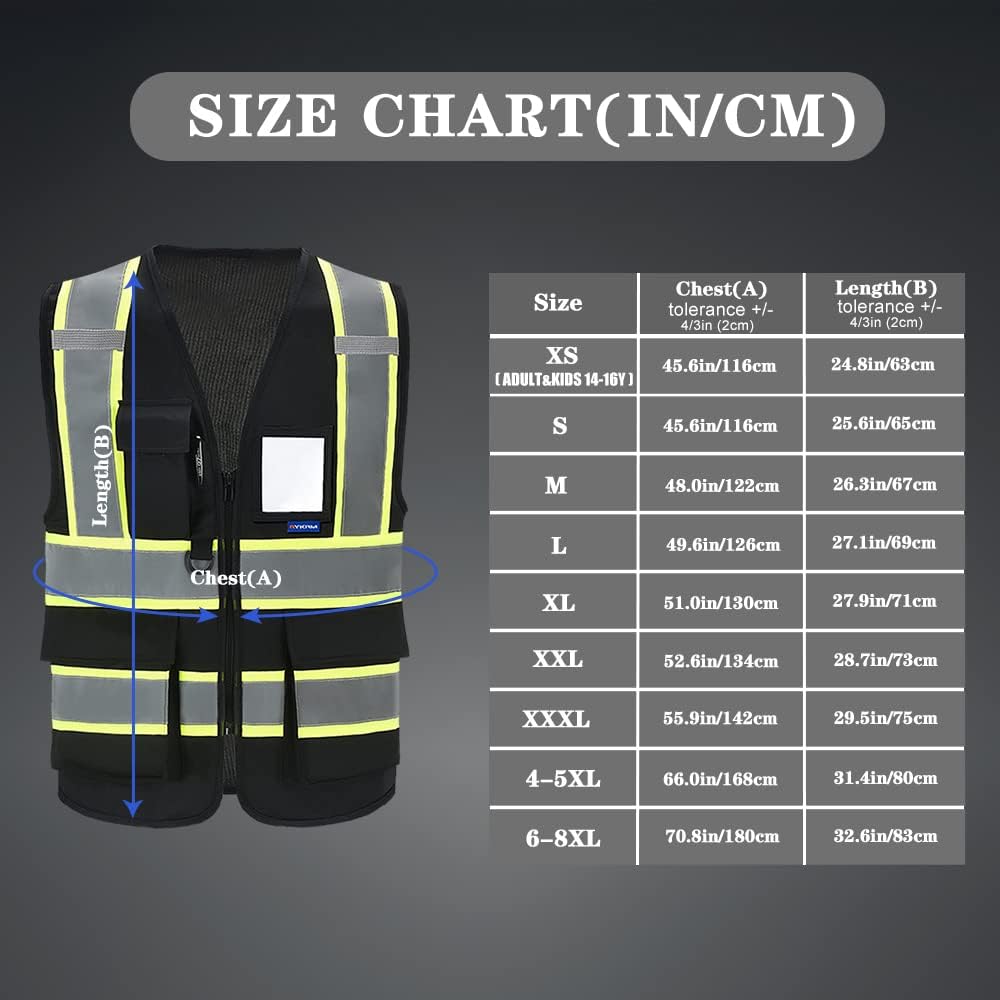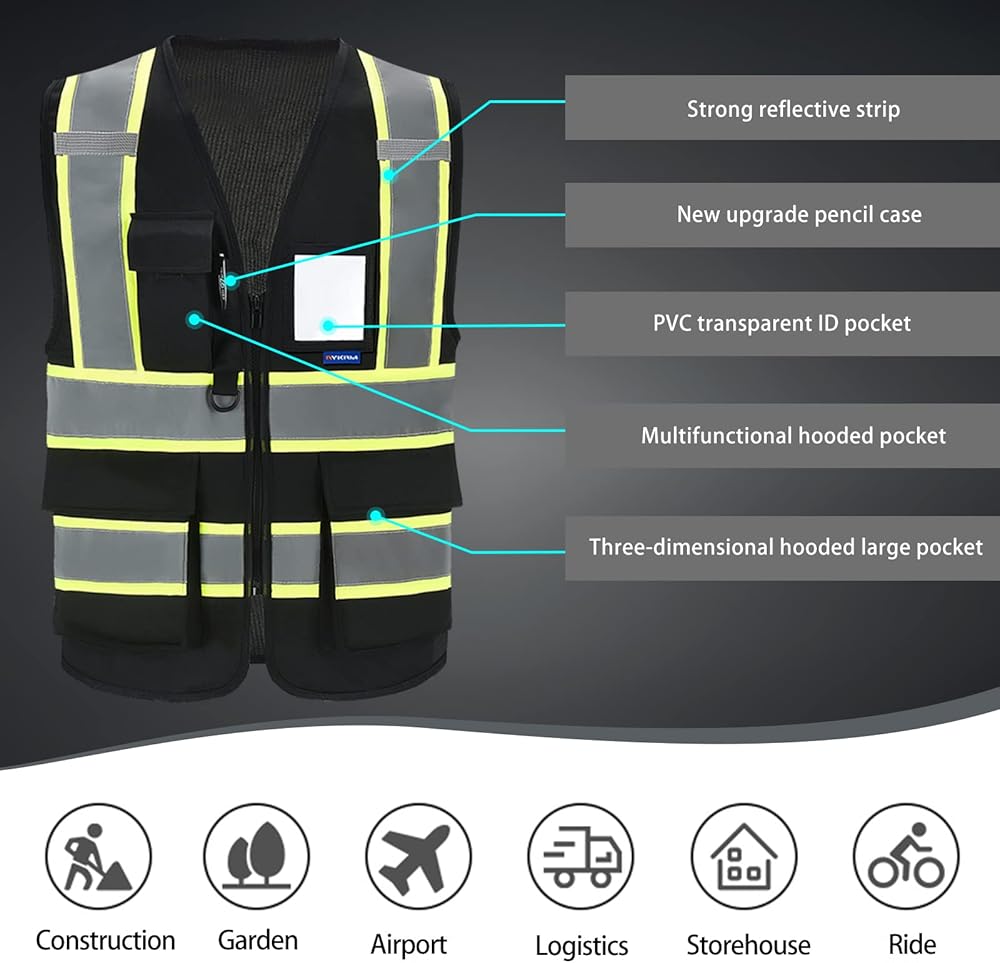 ✅【MATERIALS】high vis vest MATERIALS: 100% polyester high visibility reflective material, lightweight and breathable, washable and durable.Black edging is not easy to dirty easier to match. Customers who prefer a looser fit should order 1-2 sizes larger. Please check the size chart before placing an order!