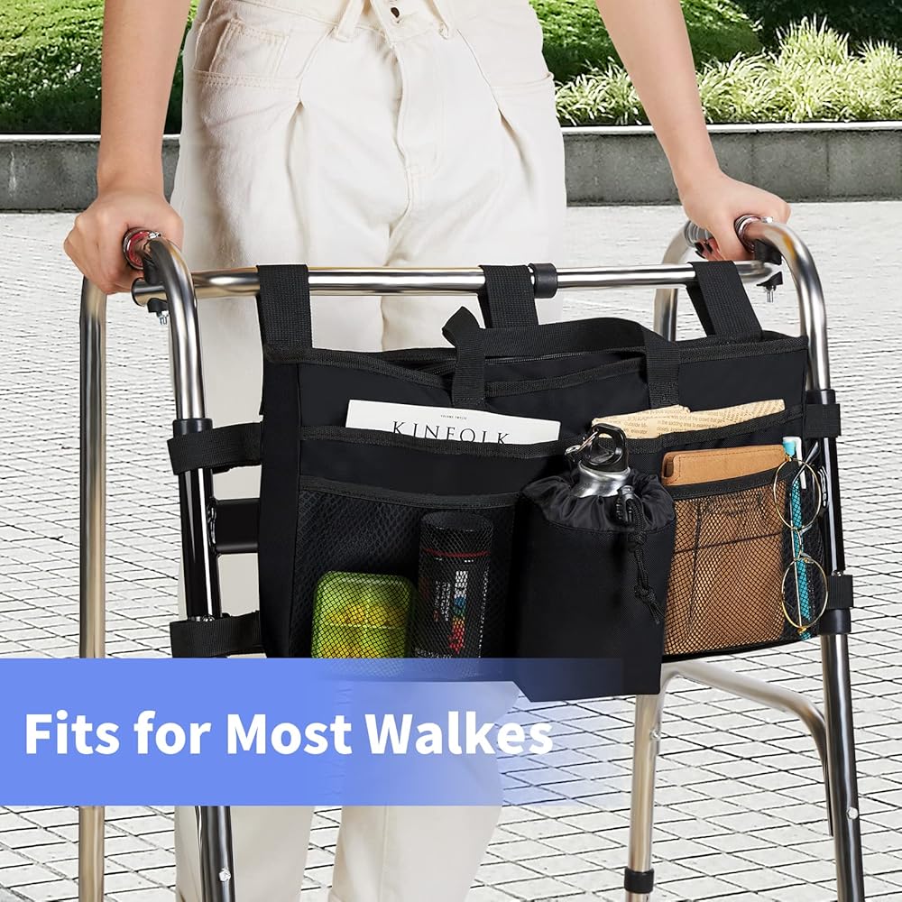 Walker Baskets with Cup Holder & Storage Bag - Hand Free Organizer for Rollator, Wheelchair & Folding Walkers (Black)