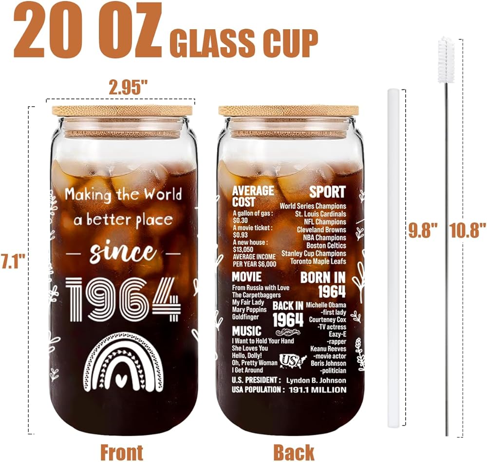 We have more different years birthday gifts, happy 21st/30th/35th/40th/45th/50th/55th/60th /65th/70th/75th/80th birthday coffee glass gifts set for women. The meaningful birthday gift is suitable for mom, nana, gigi, grandma, aunts, sister, daughter, niece, coworkers, boss, bestie, soulmate. Every birthday means that we say goodbye to the old year, and welcome a chapter. People will love recalling popular events, movies, music and facts from that year. This back in 1969 birthday coffee cup filled with fun facts 55 Years Ago. Historical facts from 1969, life in 1969, pop culture in 1969...attract more families or guests to join in the fun with you, great gift or decoration for 55th birthday party. 55th birthday decorations for her 55th birthday gifts for her happy 55th birthday decorations 55th birthday gifts for women 55th wedding anniversary decorations 55th decorations for her 55th birthday decorations for women 55th birthday decor 55th birthday party favors 55th birthday party supplies happy 55th birthday 55th birthday for her