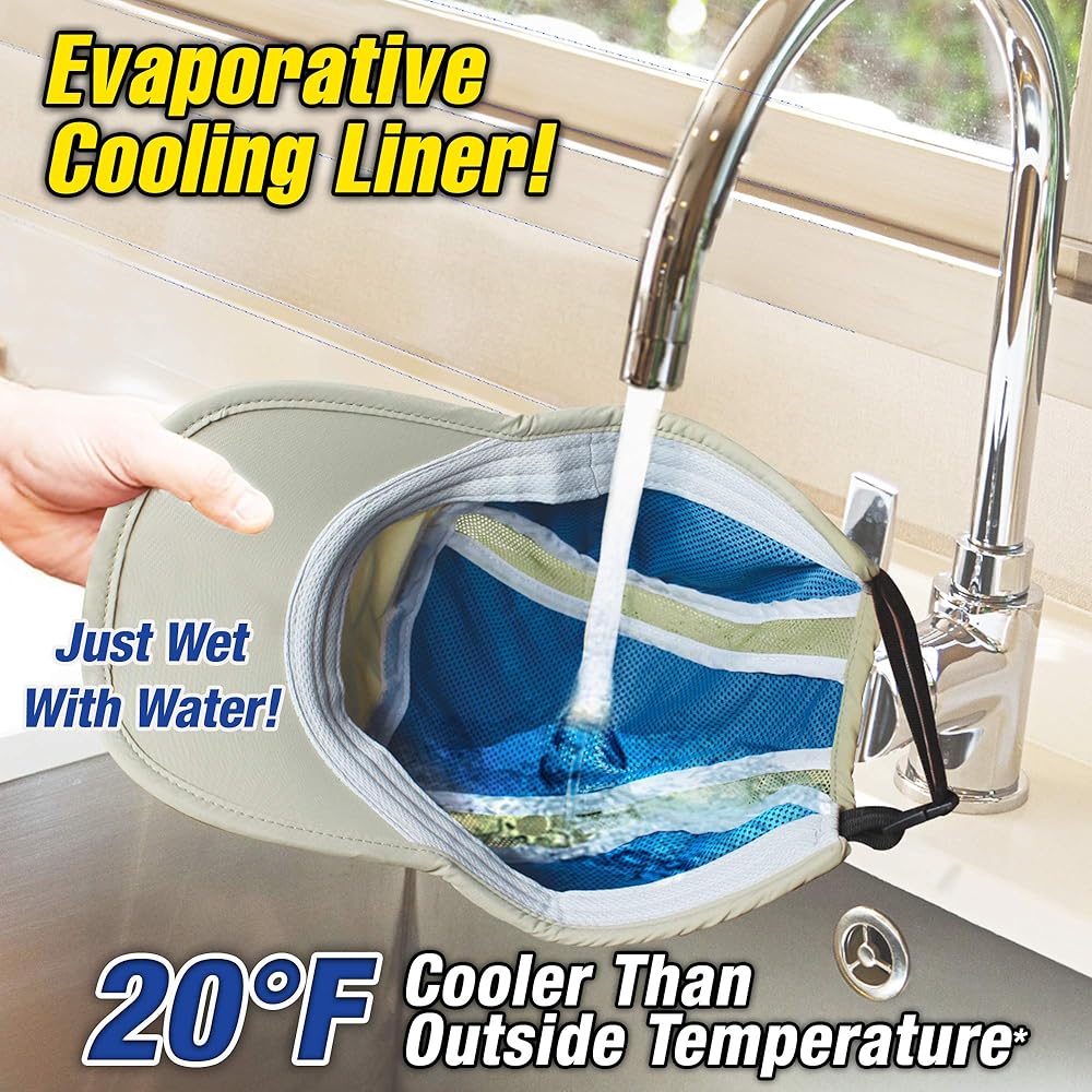 Stay cool: Features hydro-chill technology—an evaporative lining that holds & gradually releases water for continuous cooling. It's breathable & lightweight with ventilated panels that allow air to flow freely