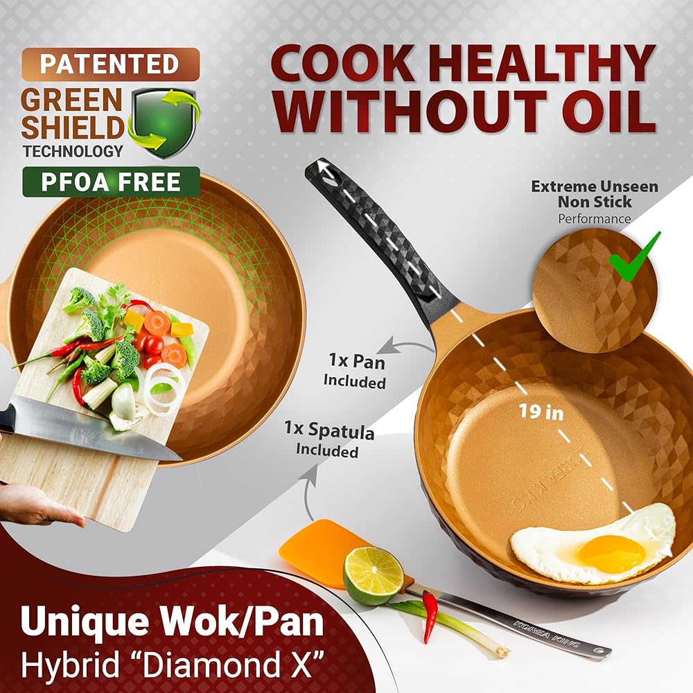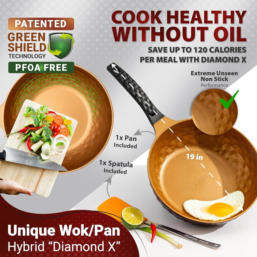 💎 𝗥𝗘𝗔𝗗𝗬 𝗧𝗢 𝗥𝗘𝗩𝗢𝗟𝗨𝗧𝗜𝗢𝗡𝗜𝗭𝗘 𝗬𝗢𝗨𝗥 𝗞𝗜𝗧𝗖𝗛𝗘𝗡 𝗘𝗫𝗣𝗘𝗥𝗜𝗘𝗡𝗖𝗘 𝗪𝗜𝗧𝗛 𝗧𝗛𝗘 𝗣𝗜𝗡𝗡𝗔𝗖𝗟𝗘 𝗢𝗙 𝗡𝗢𝗡𝗦𝗧𝗜𝗖𝗞 𝗧𝗘𝗖𝗛𝗡𝗢𝗟𝗢𝗚𝗬? Meet the Diamond X, not just a wok or a pan but the best of both. Transcending the ordinary frying pan to become a milestone in nonstick culinary solutions. Our groundbreaking patented Green Shield Innovation promises unparalleled nonstick efficiency, empowered by a complex 8-layer coating system.