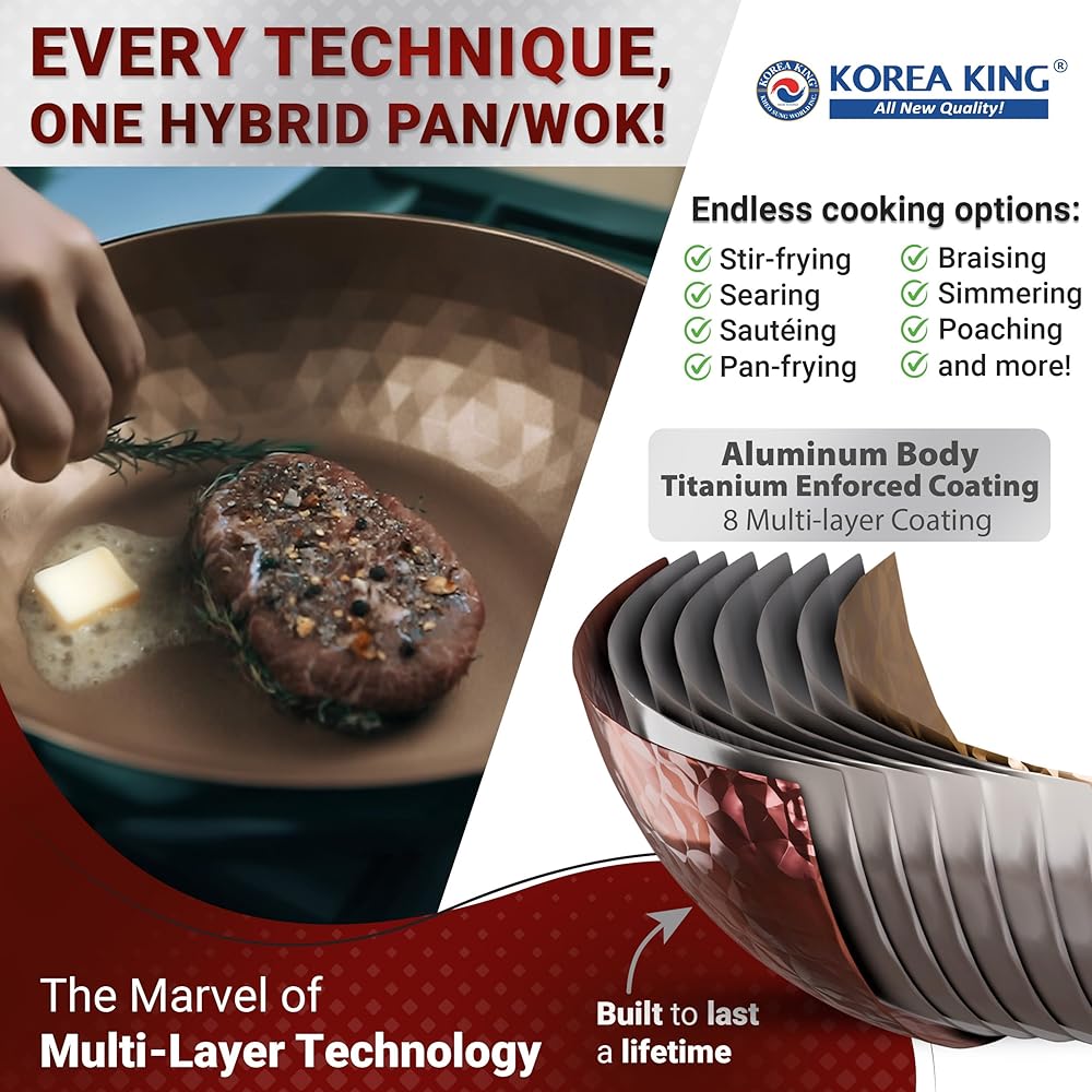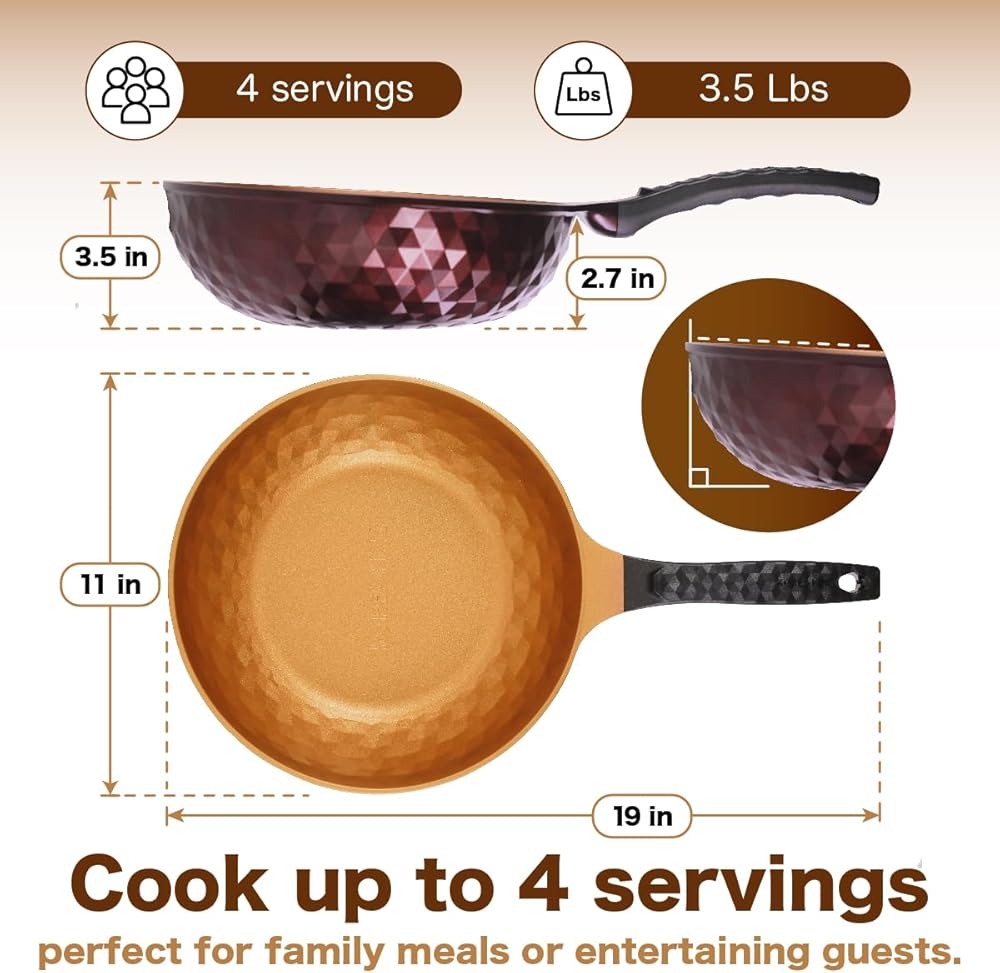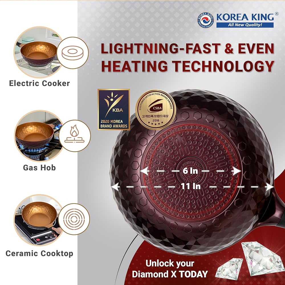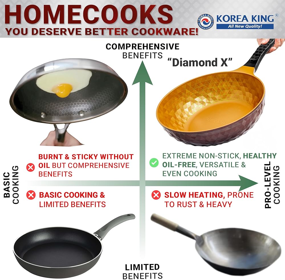 Diamond X Premium Non Stick Wok Pan - 11" Large Flat Bottom Chinese Wok - Woks & Stir-fry Pans Nonstick - Titanium-Coated 8-Layered Korean Engineered Skillet for Frying, Oil-Free, PFOA-Free