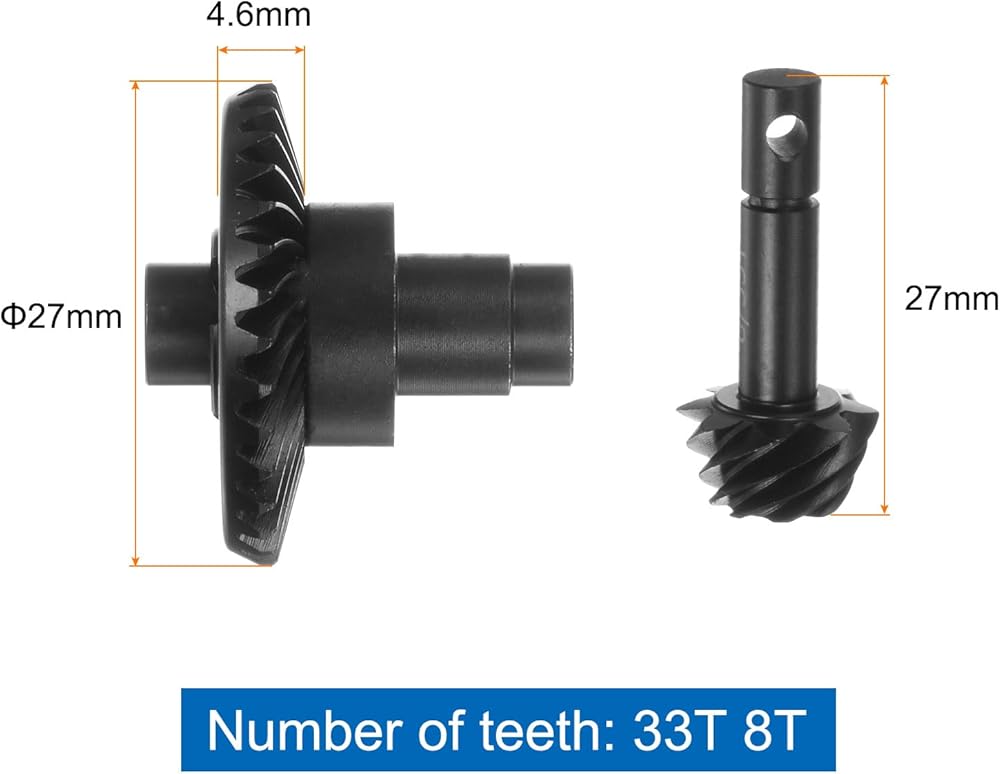 Enhanced Performance: Upgrade your vehicle with the Steel Diff Gear set, featuring a gear inner diameter of 3*4mm, thickness of 4.6mm, and outer diameter of 27mm. With its 24T 8T tooth configuration and carbon steel construction, this gear set offers high strength and exceptional wear resistance, ensuring superior performance in conditions.