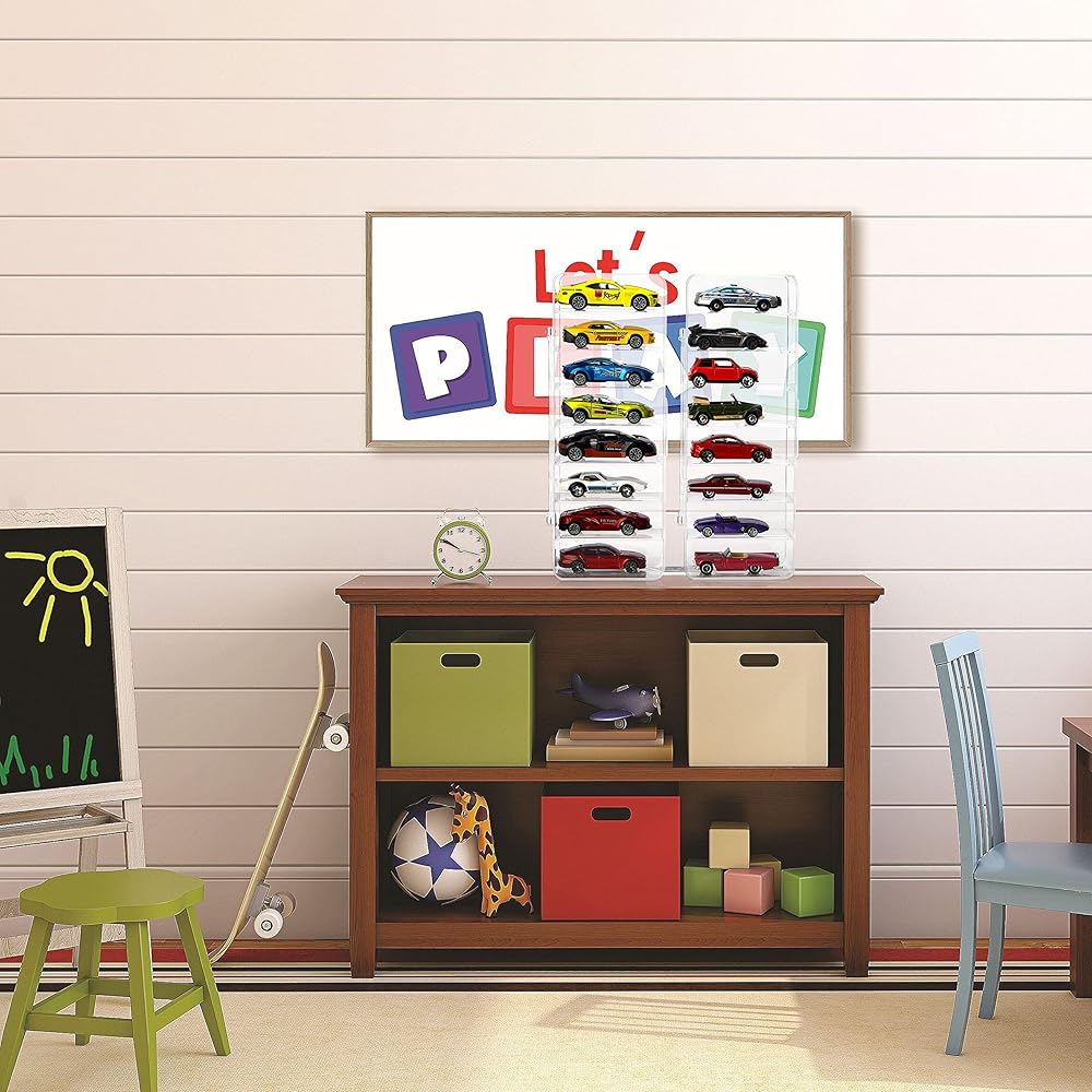 As A Decoration: 2 pack with 16 slots display case for hot wheels is convenient to collecting for hot wheels, matchbox cars. It can be used in home, office for a decoration for hot wheels cars enthusiasts.