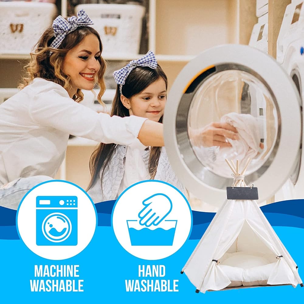 zycBernoi Pet Teepee Tent for Small Dogs & Cats, 24 Inch Portable Dog House with Thick Cushion, Cat Teepee Washable Tent Dog Teepee Bed Indoor Outdoor(White)