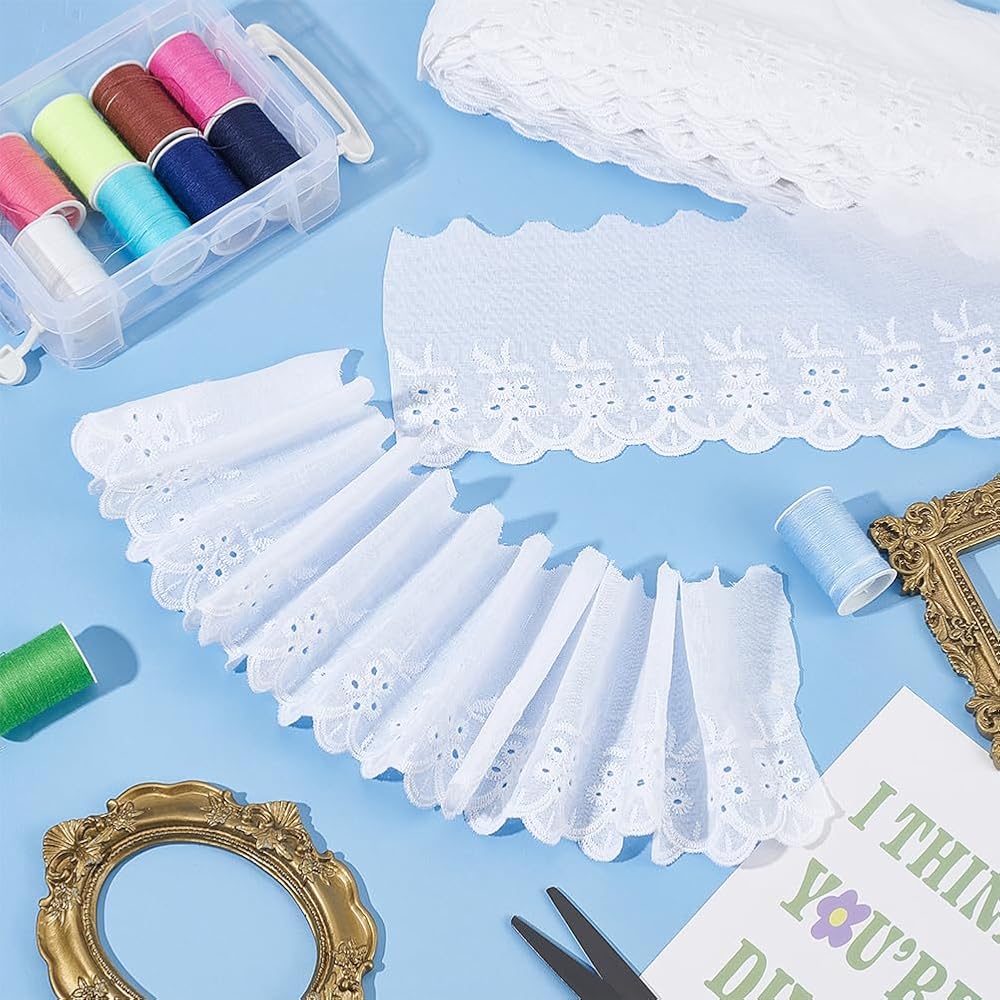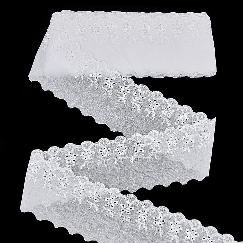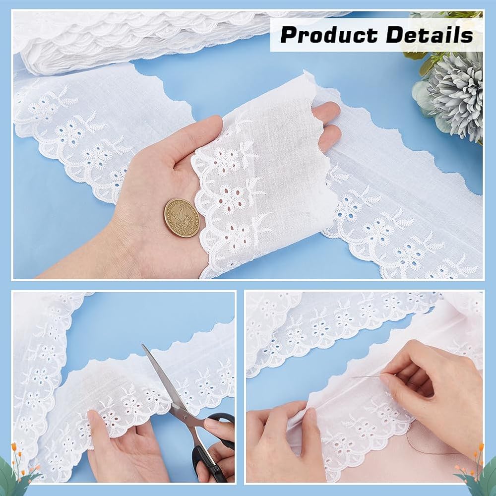 Convenient to Use: The whole roll of lace has a long size, which can be cut according to the actual size; TThe embroidery is exquisite, and it is not easy to crack at the cutting point; Pure white fabric is easy to color. You can also dye the lace into the desired color according to your needs.