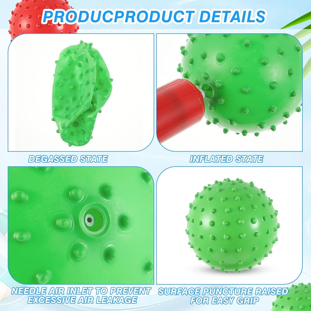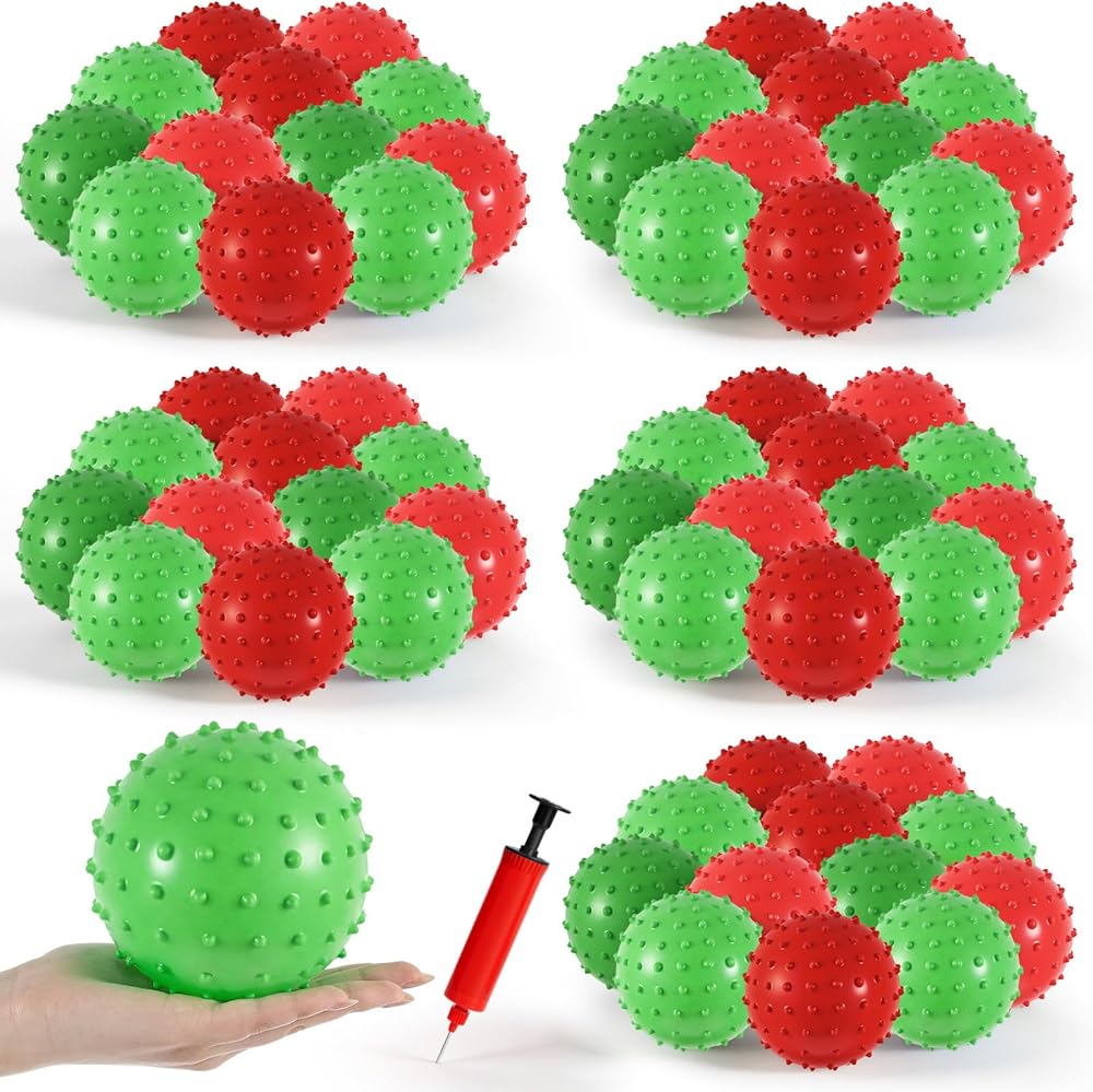 Endless Fun: these knobby balls are designed with uneven tactile surfaces, which can gently stimulates the skin, palms, and soles of your whole body to promote tactile development; After inflation, you can use these small plastic balls to complete various ball games easily by throwing, bouncing and rolling; Each bouncy ball is about 5.5 inches in diameter after being inflated, suitable for you to play with