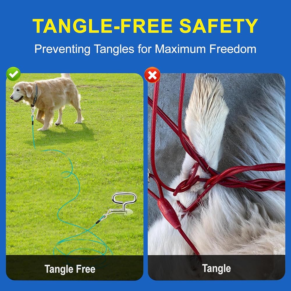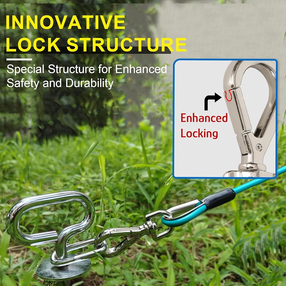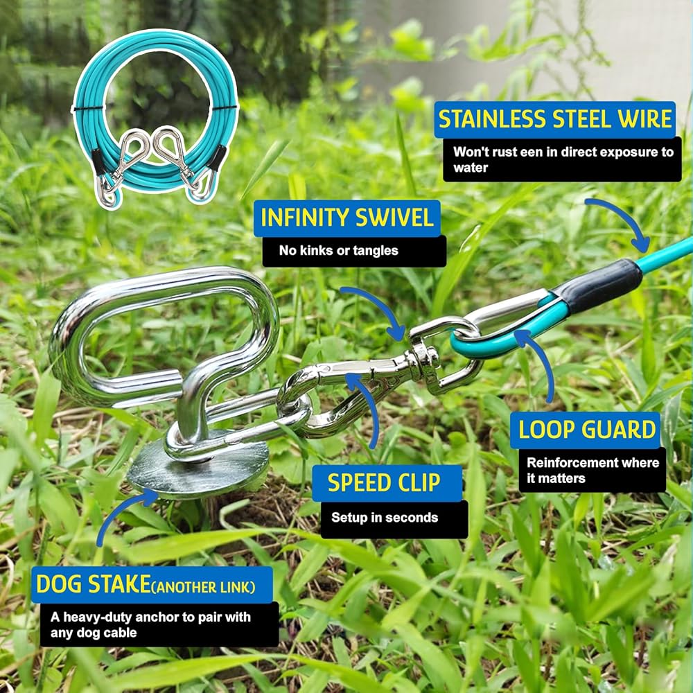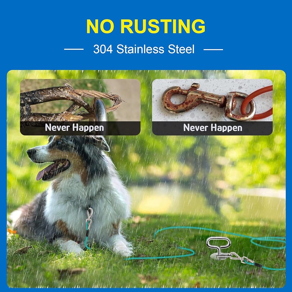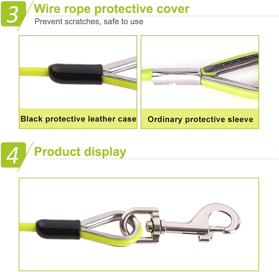 MATERIAL: Our tie-out cable is made of galvanized steel wire rope with PVC coating for crack resistant and rust-resistant performance.