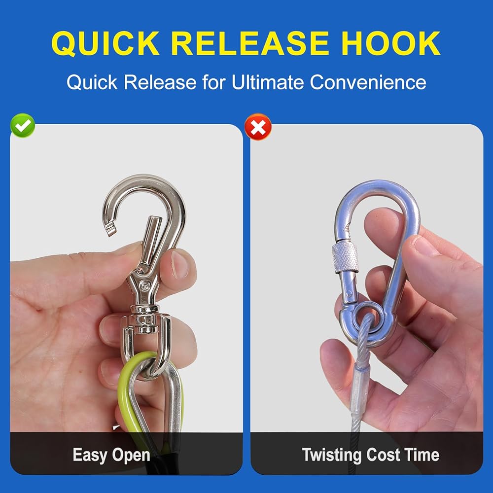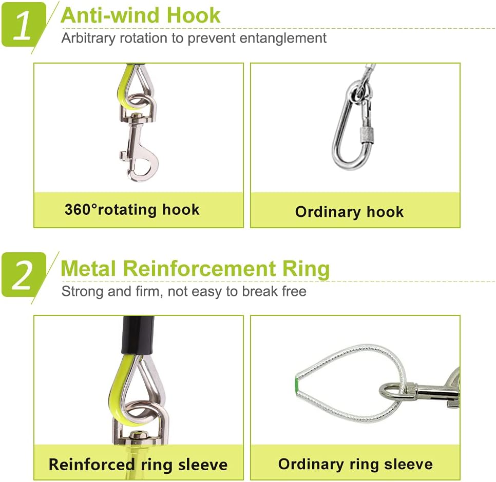 ANTI-RUST HOOKS: Our cable has heavy duty metal swivel hooks at both end of the leash for ensuring quick, easy connections. The hooks have anti-rust and corrosion resistance.