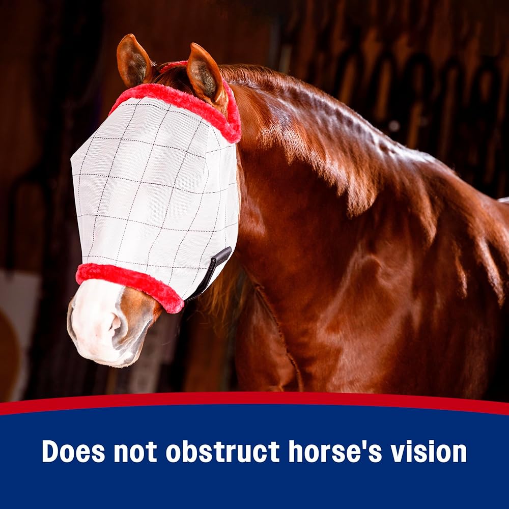SuperMask fly masks keep flies, dust, dirt and debris away from your horsess eyes while protecting their face and eyes from harmful UV rays and aiding eye injuries to heal. The seethrough mesh does not obstruct the horsess vision and the plush, flyproof trim provides maximum comfort without rubbing or harsh abrasion. Stays On The Horse Comfortable Fit Keeps Flies Off Protects Eyes from UV Rays
