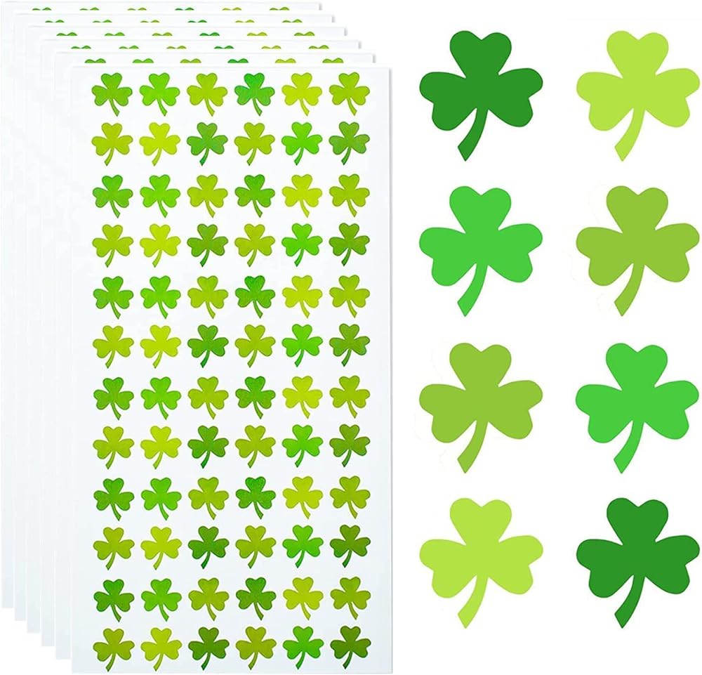 St. Patrick's Day Stickers, 500 Pieces Irish Shamrock Sticker Clover Stickers for Bags Boxes Wrap Cards Party Decoration Supplies