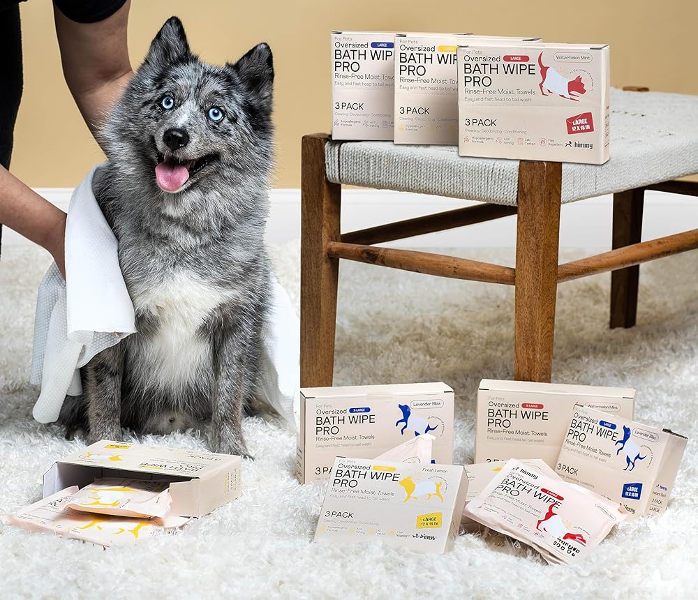 WIPE OUT BATH TIME - Our giant, deep-cleaning bath wipes for dogs enable you to take All The Power of A Shower with you anywhere. Himmy is on a mission to make pet washing less of a pet peeve, with less time spent wrangling and more time spent snuggling.