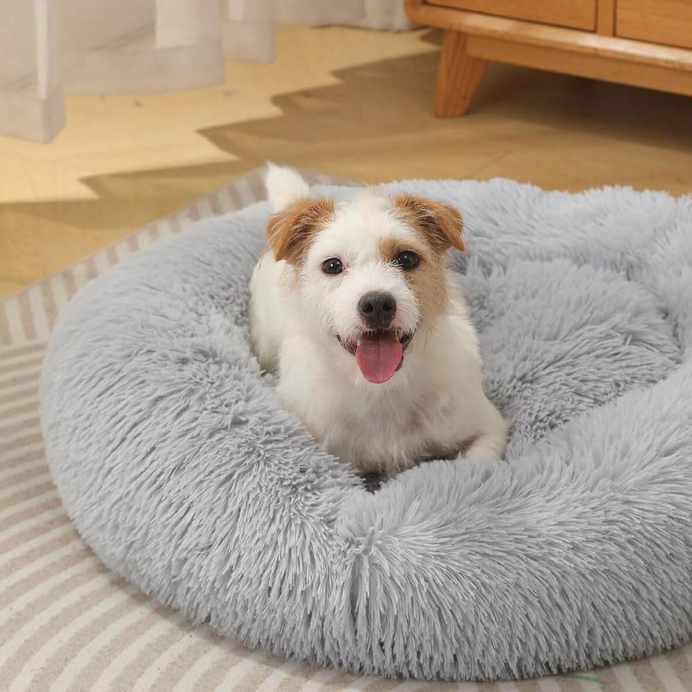 Donut Dog Bed Large Dog Bed Pet Bed Anti-Slip Round Fluffy Plush Faux Fur Cat Bed Cat Beds for Indoor Cats for 10KG Pet