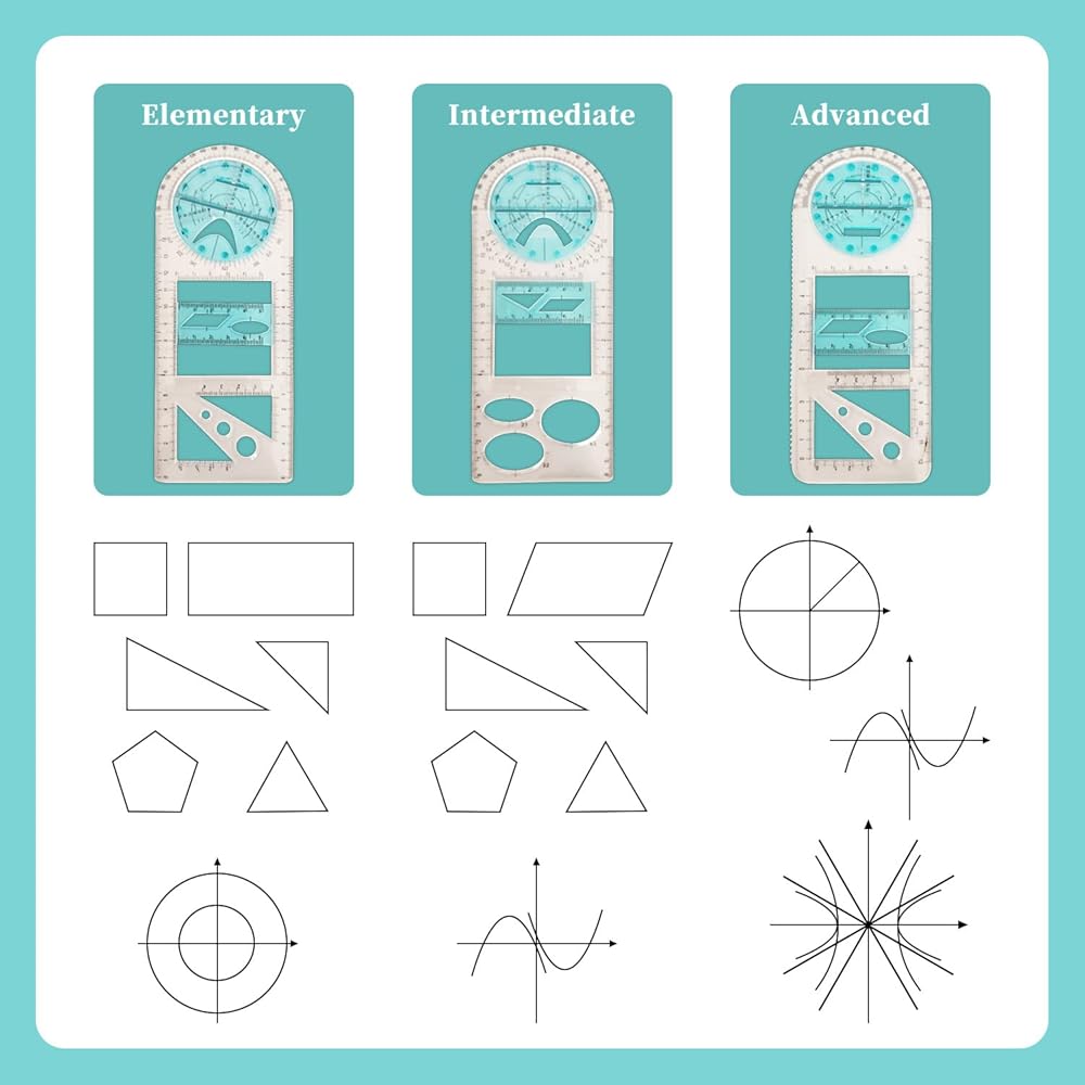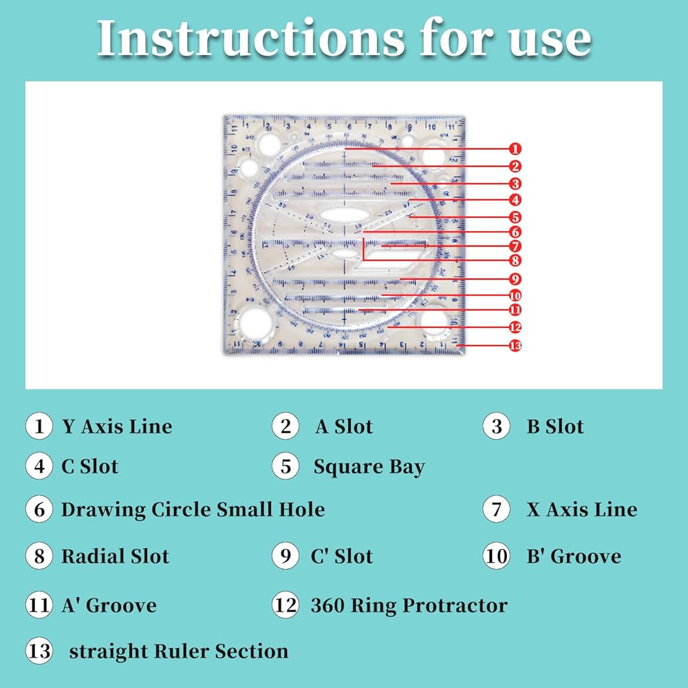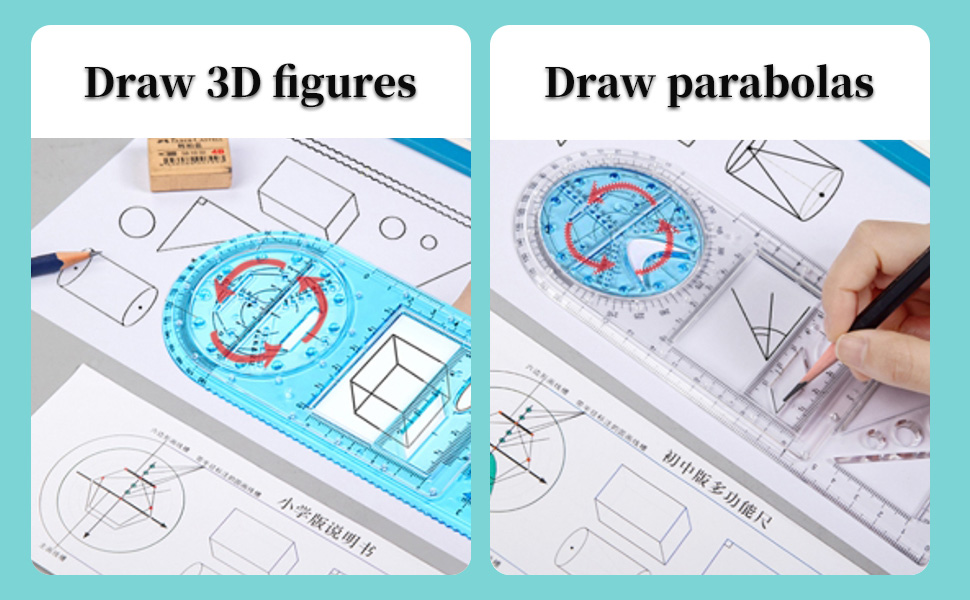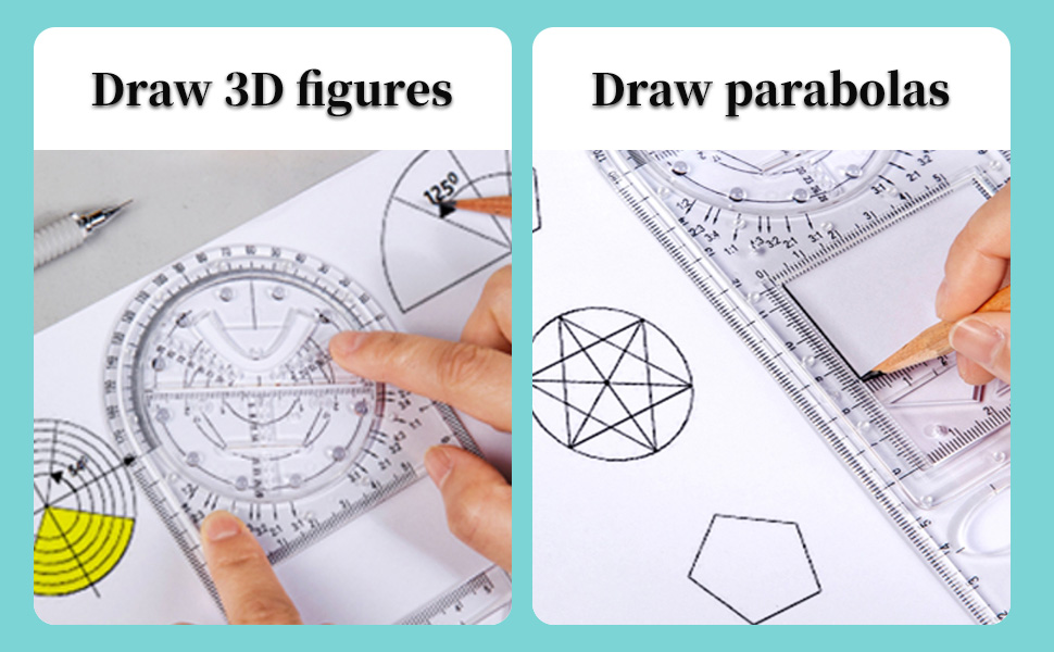 [Convenient and Efficient]: This drawing ruler provide the ability to draw angles to measure corners, draw floor plans, three-dimensional drawings, parabolas, and rotatable, moveable designs that simplify the process of creating precise, complex designs.