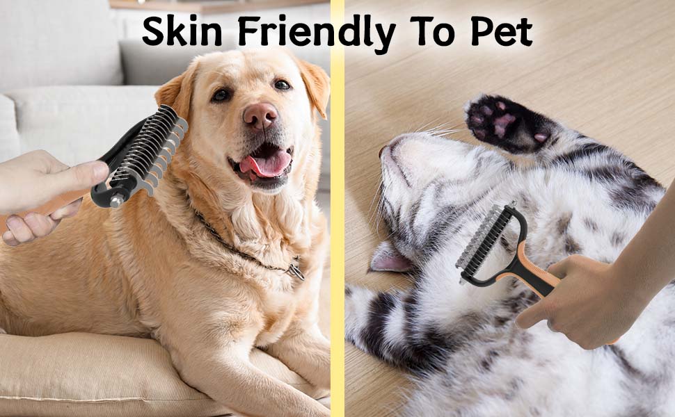 Multi-Purpose Grooming Tool: More than just a deshedding brush or slicker brush, this grooming tool transforms into an undercoat rake or fur rake. Suitable for both cats and dogs, it not only combs through fur but also snips through knots, serving as both a deshedding brush and grooming comb.