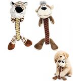 Get ready for a wild adventure with our Animal Rope Toy 4-Pack! Your furry friend will go bananas for these adorable and durable toys that bring the jungle to your living room. 🐅 Tiger Toughness: The ferocious fun starts with our Tiger Rope Toy. With its tough, knotted design, it's perfect for a game of tug-of-war, and it's sturdy enough to withstand even the mightiest of canine jaws. Your pup will pounce with delight! 🦒 Giraffe Gigglefest: Tall, spotted, and tons of fun! The Giraffe Rope Toy is a long-necked charmer that's as silly as it is strong. Whether it's a friendly game of fetch or tug of war, this toy will keep your dog entertained while promoting healthy dental habits. 🦏 Rhinoceros Rambunctiousness: Our Rhino Rope Toy is built for roughhousing. It's tough and rugged, just like the real deal. Watch your dog unleash their inner rhino as they gnaw, toss, and play. It's a beastly good time! 🦛 Hippo Hilarity: Hippo Rope Toy is here to bring some water-loving whimsy to your pup's playtime. With its chubby cheeks and chunky body, it's an irresistible chew buddy that's gentle on your dog's gums and teeth. No need to worry about sinking teeth into this friendly hippo. Give your dog the gift of an animal-themed adventure that's both entertaining and beneficial. Our Animal Rope Toy 4-Pack will keep your pup busy, engaged, and excited, all while promoting healthy play and bonding between you and your furry family member. So, why wait? Let the safari begin! Grab your Animal Rope Toy 4-Pack today and bring the zoo to your home. Your dog will thank you with endless smiles, wags, and maybe even a few friendly roars of appreciation! 🐶🐾