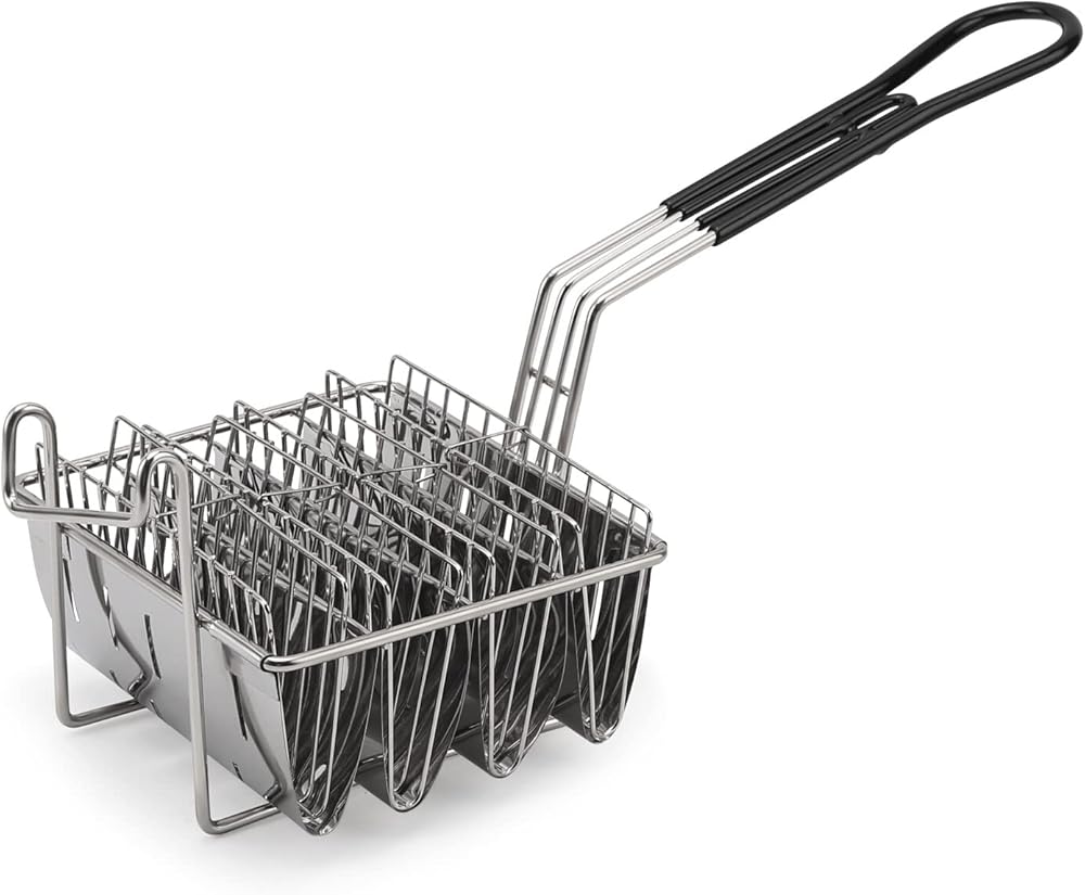 This taco shell fryer container is designed to cook 4/6 tortillas in taco forms at a time.