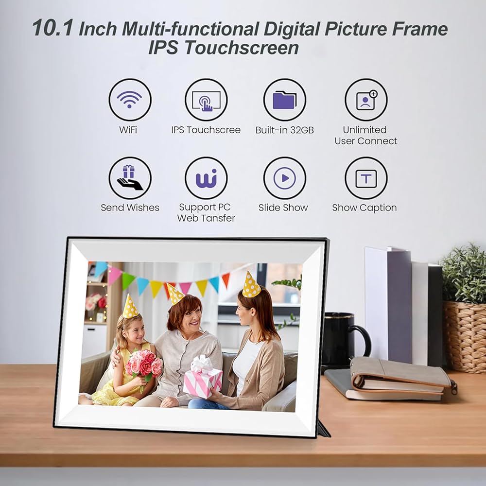 WiFi Uhale Digital Picture Frame with 32GB Storage,Smart Digital Frame with 1280 * 800 IPS Touch Screen,SD Card Slot,Send Photos and Videos via Free apps from Anywhere,Gifts (10.1Inch)