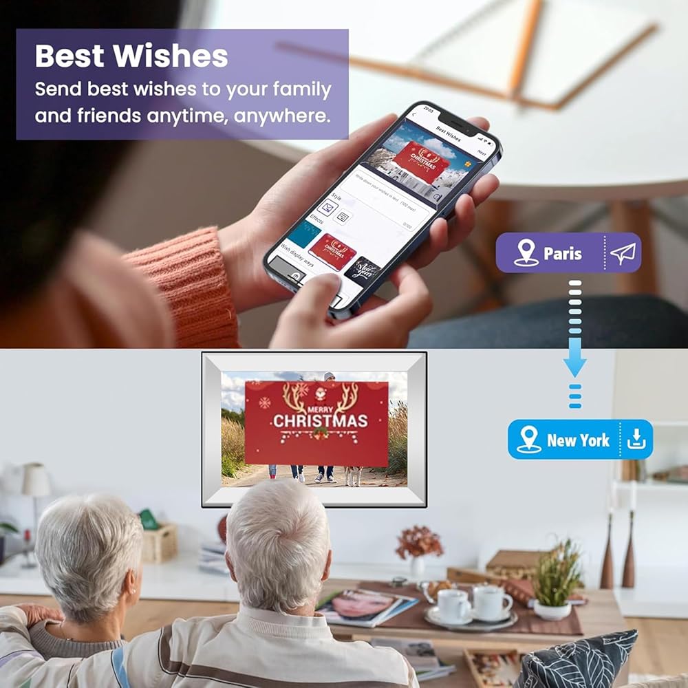 【Perfect Gift for Any Occasion】Our digital picture frame is a perfect gift for almost all occasions (such as Valentine's Day, Mother's Day, Father's Day, Christmas, etc.), and its advanced technology and high-end design concepts will bring you and your friends and family an infinite surprise experience. No matter where you are and how far away you are, all you need is a cell phone to share unforgettable moments with your friends and family through our digital photo frames, because it is a bridge to share memories between friends and family.