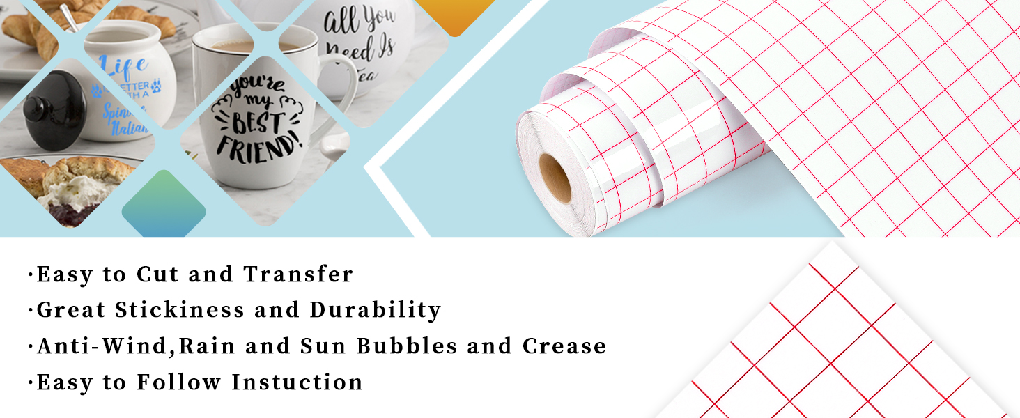 📄【GREAT SERVICE】We have confidence with our Transfer Tape for vinyl. We will try our best to make you fully satisfied with our transfer paper. If your product does not perform to your expectations, please contact us immediately to report the issue. We will make every effort to ensure your satisfaction!