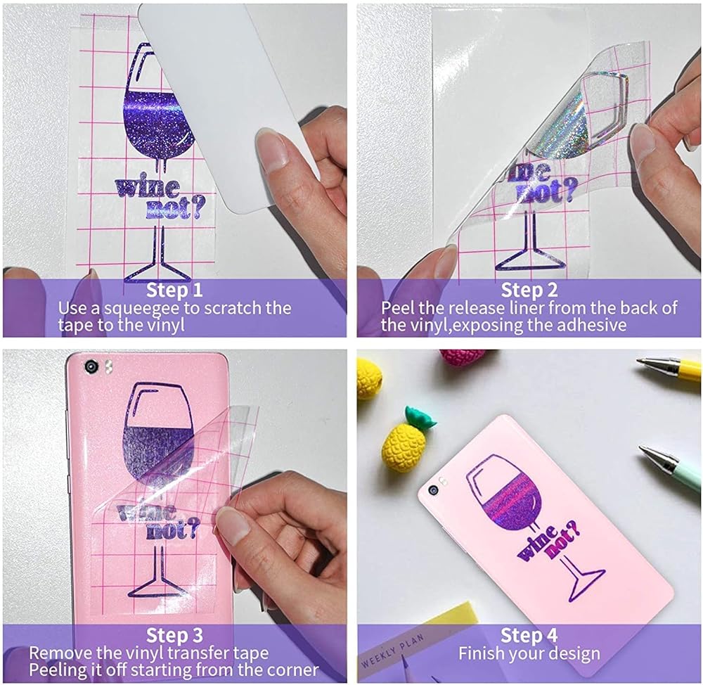 📃【WIDE APPLICATION】IModeur transfer tape for vinyl is designed to work with permanent vinyl by Cameo Silhouette, Provo Craft, Cricut Vinyl, Oracal and much more. But it can't work with HTV, holographic vinyl and glitter vinyl. Easy transfer to any smooth surfaces like sign stickers, windows, walls, ceramics, glass, etc.